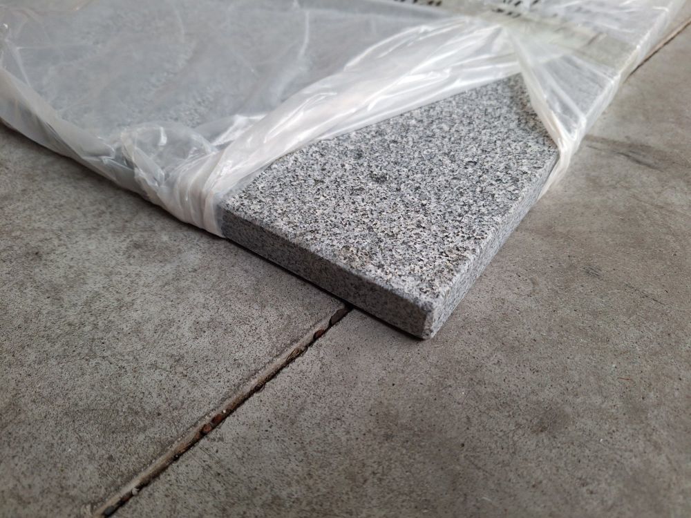 Werkblad: Duurzaam grijs stenen/granieten blad, bestand tegen verschillende weersinvloeden.