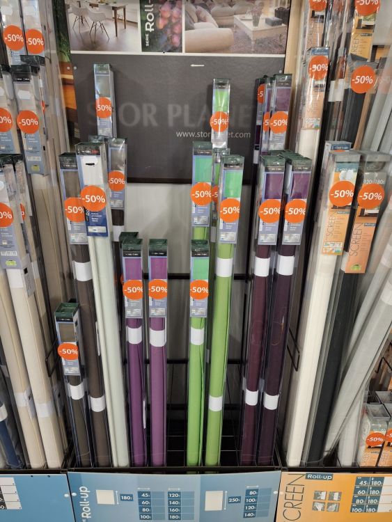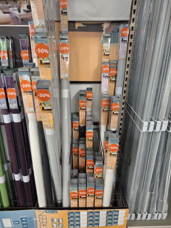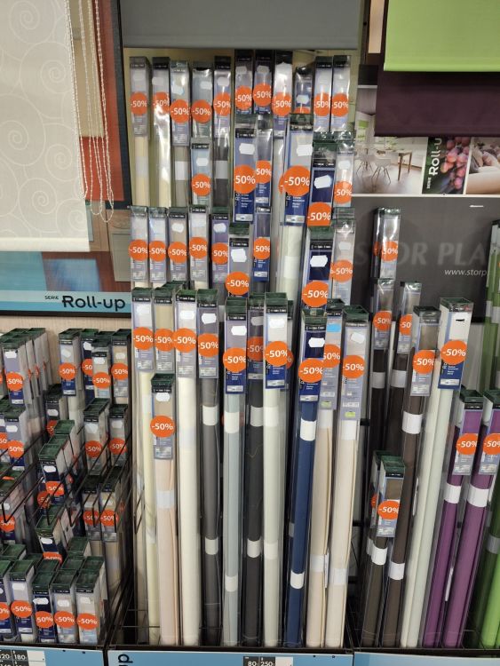 | Name: | 4 x metalen rekken incl.een 200 diverse rolgordijnen |