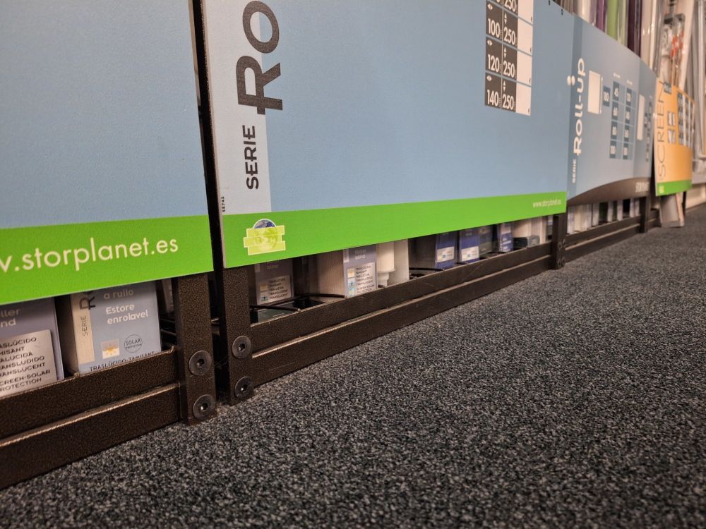 4 x metalen rekken (L66xB50xH270) met daarin een 200 units rolgordijnen