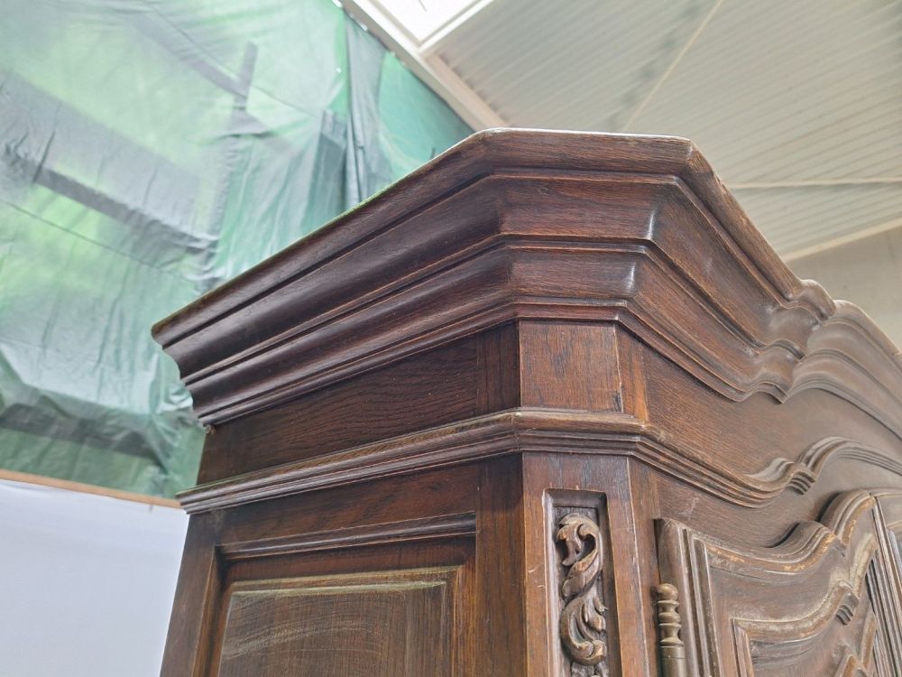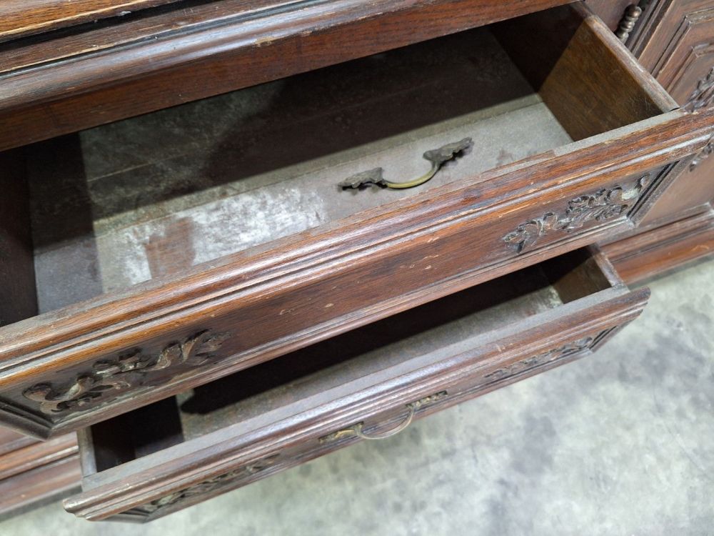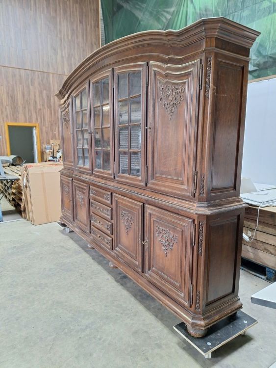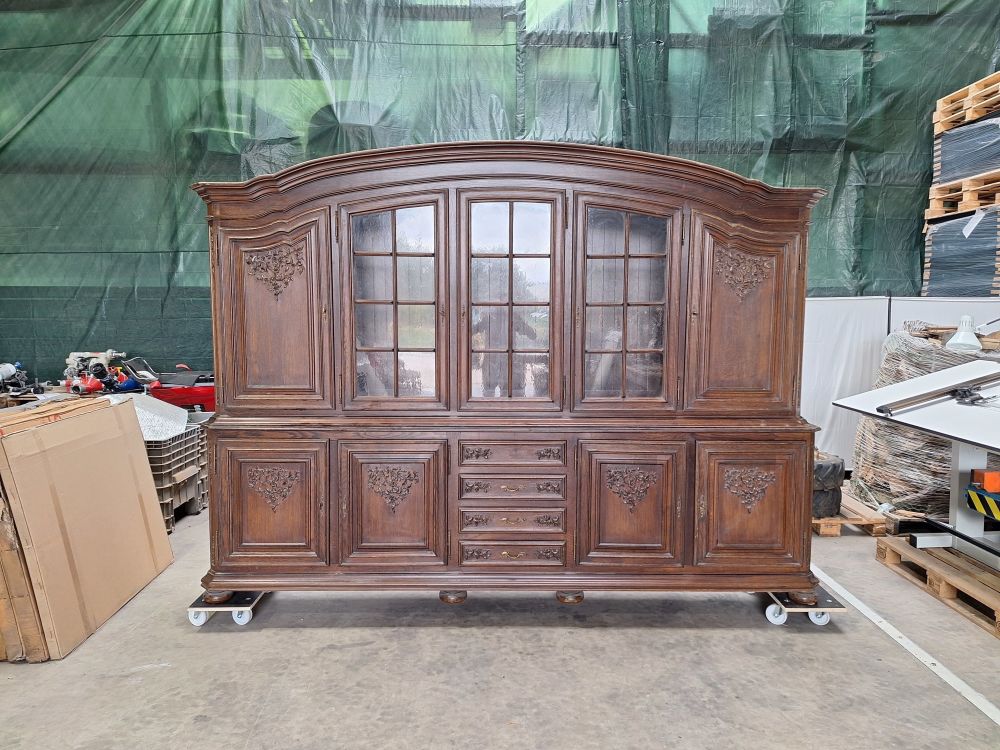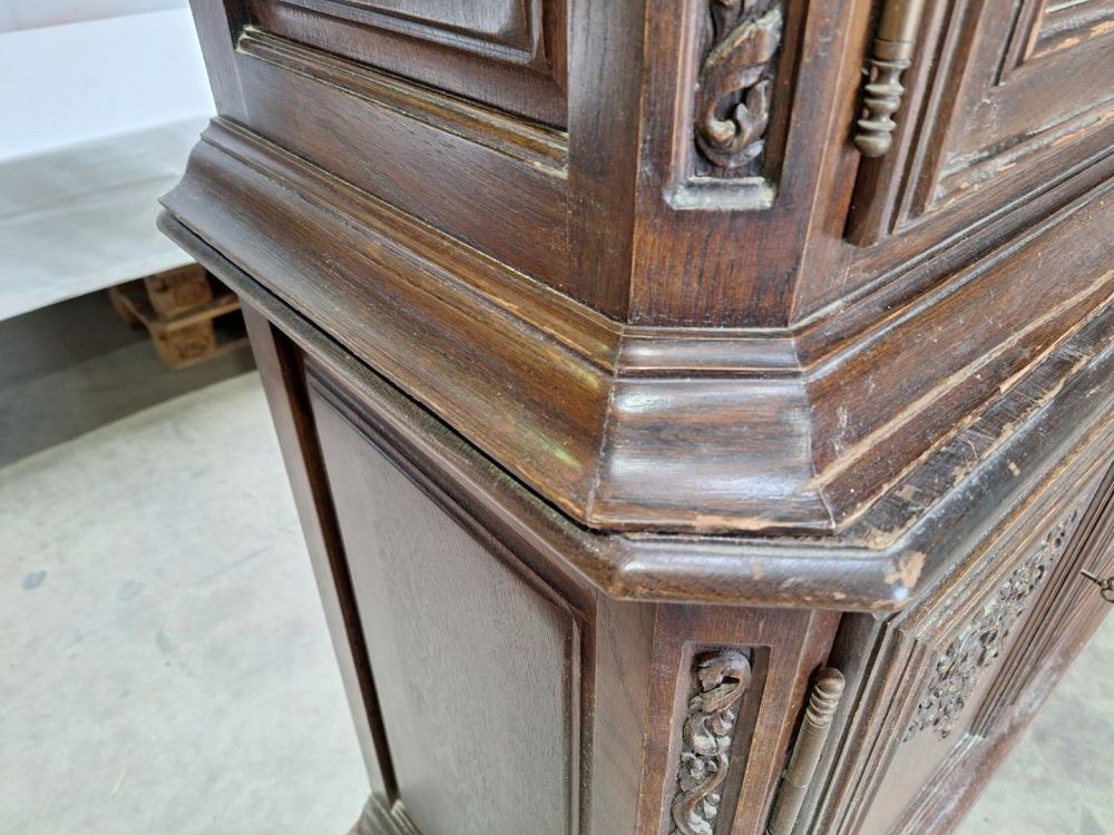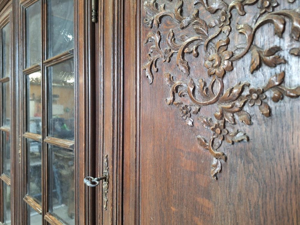| Name: | Antieke houten vitrinekast met rijkelijk gedetailleerde houtsnijwerk |