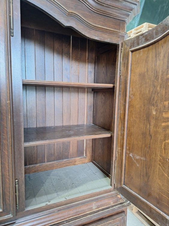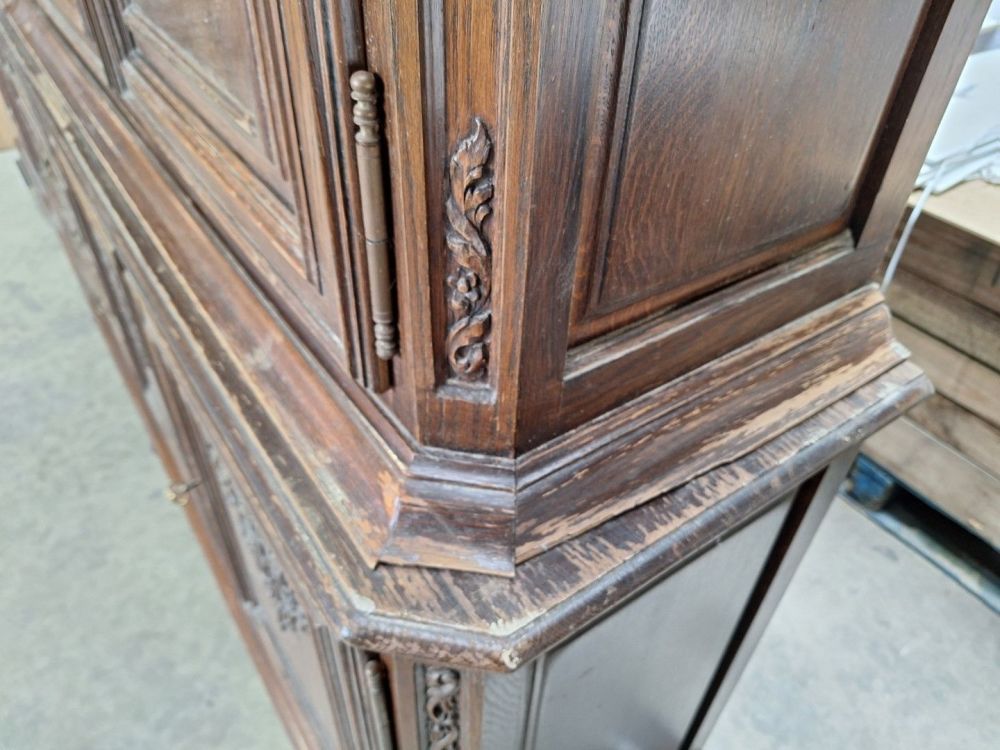 | Name: | Antieke houten vitrinekast met rijkelijk gedetailleerde houtsnijwerk |