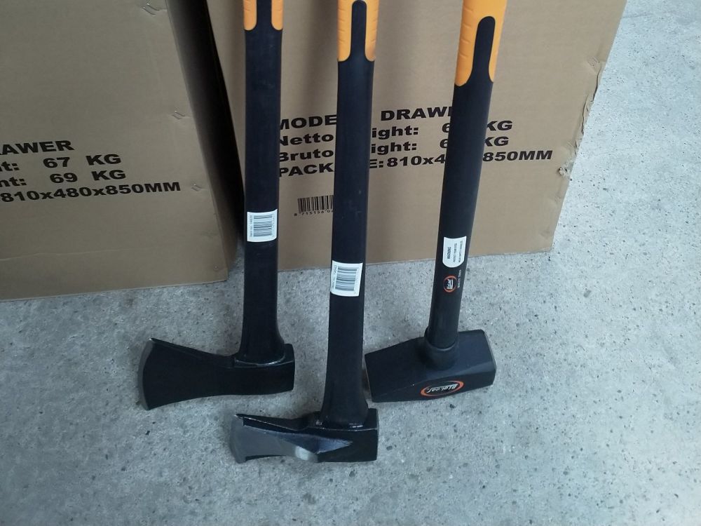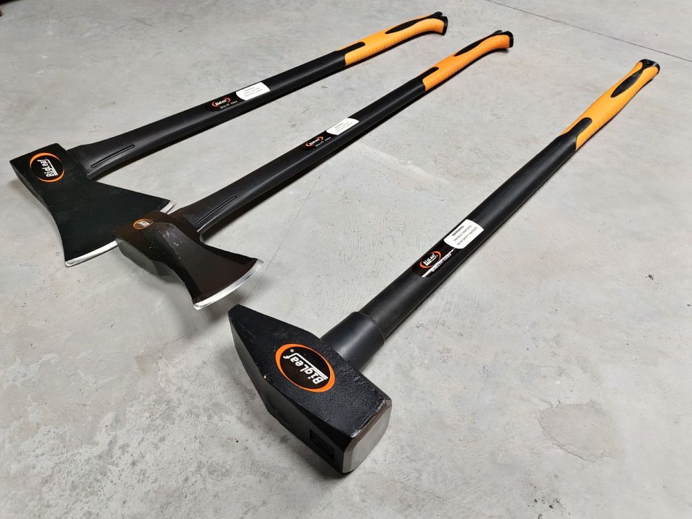 1x Hamerset, 3-delig, 1 Voorhamer Bank 4000 gr fiber, 1 Splijtbijl fiber 2200 gr, 1 Bijl 2000 gram. fiber BigLeaf, nieuw