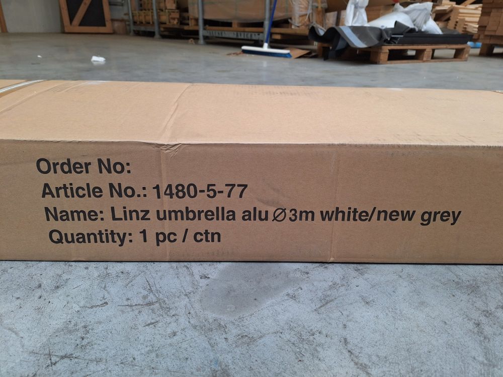 Kleur: Zwart doek gecombineerd met een robuuste antracietkleurige mast.