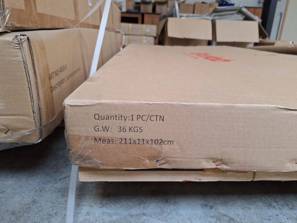 Verpakking: 1 stuk per doos (afm. doos 211 x 11 x 102 cm).