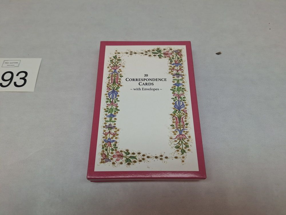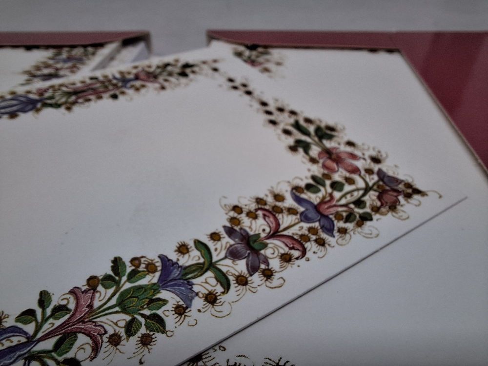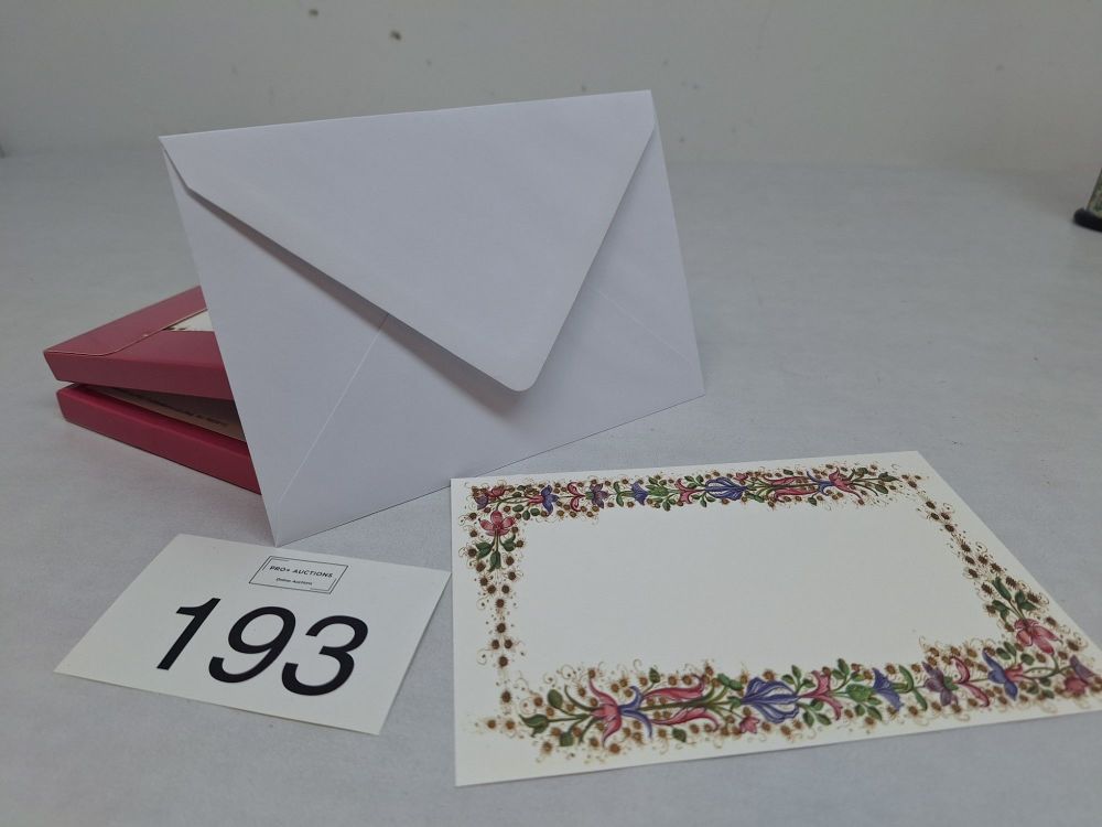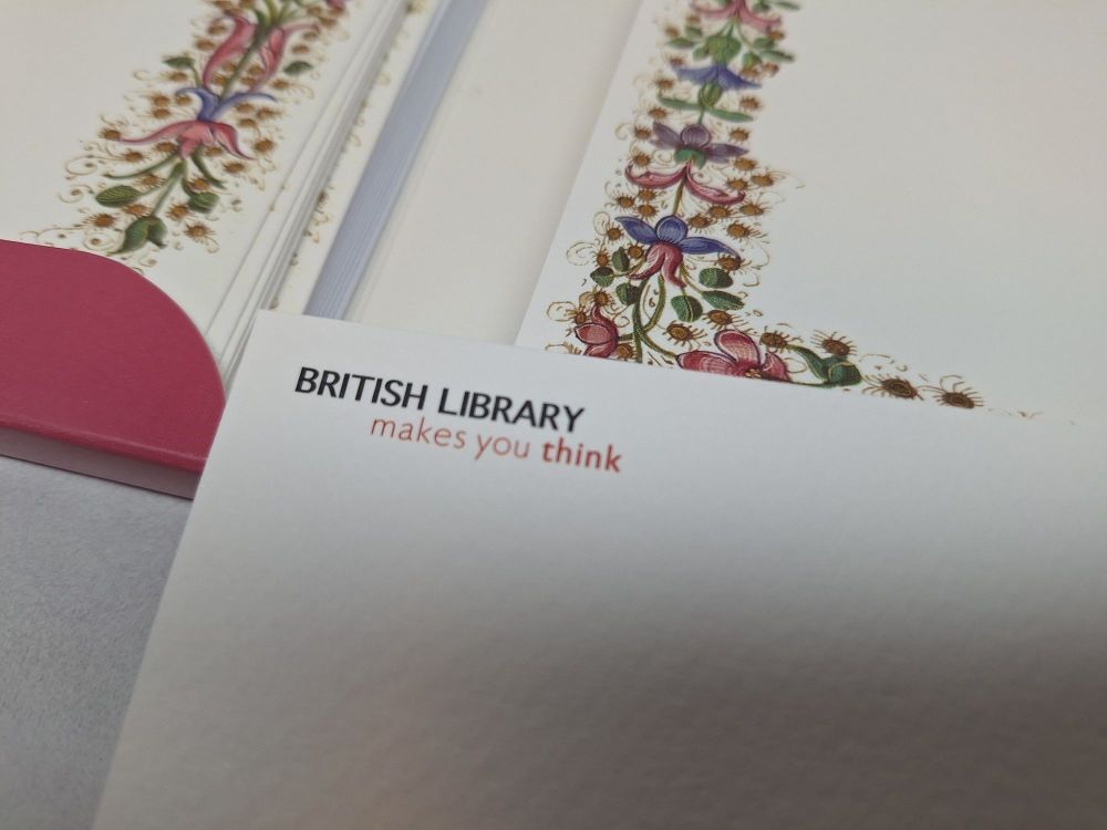 British Library "Correspondence Cards" (20 blanco kaarten met bijpassende enveloppen), met sierlijke florale randen geïnspireerd op de illuminaties uit "The Hours of Agostino Biliotti" (Boek der Uren, Florence 1485).