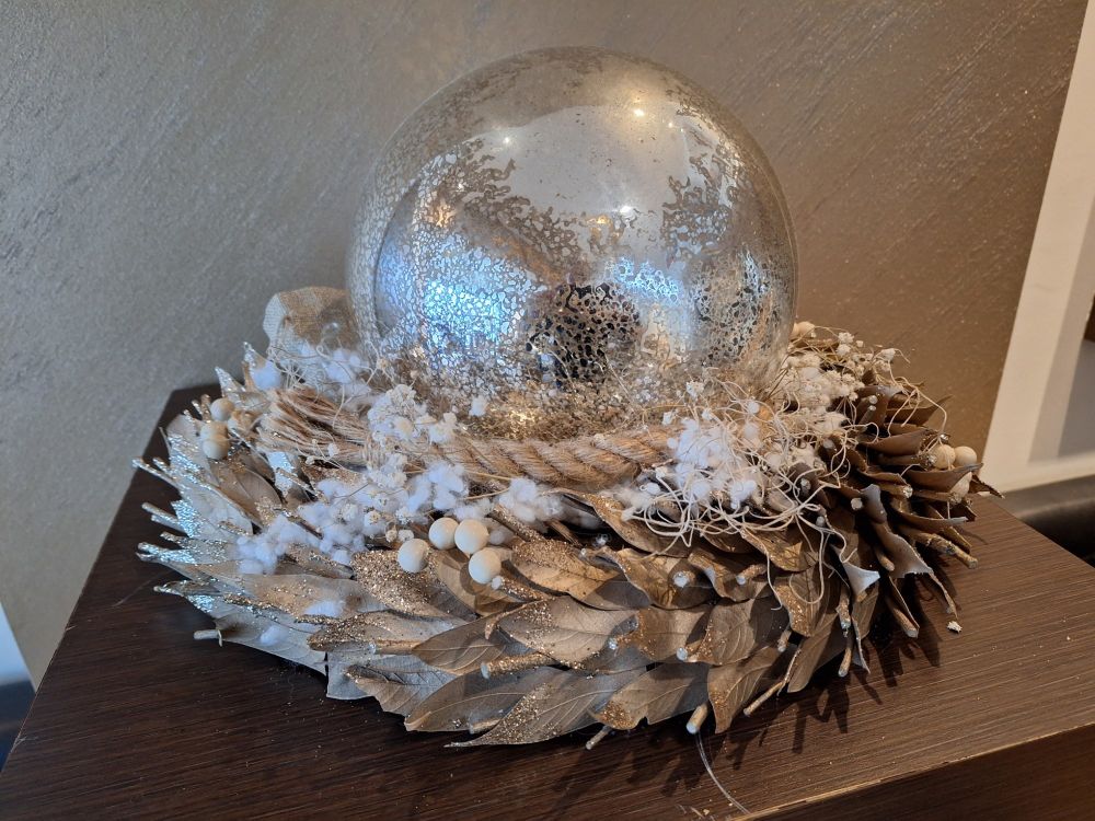 | Name: | Decoratieve zuil met laurier en zilverkleurige bol |