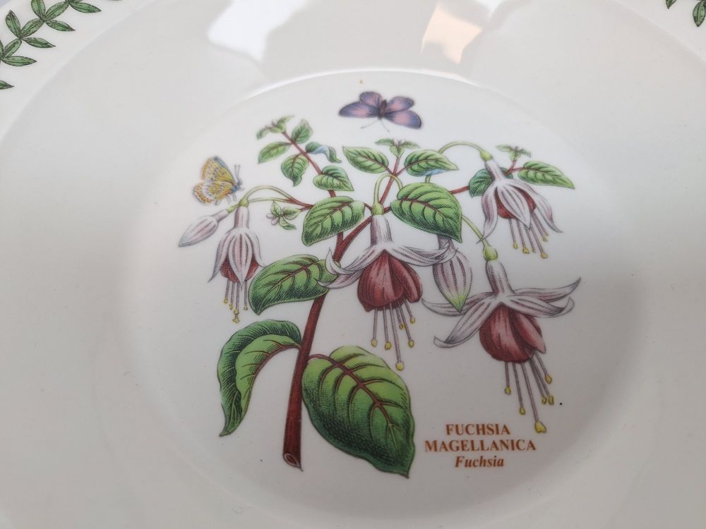 | 4x Diepe Kom/Diep Bord | Groene botanische rand en illustratie van de Fuchsia Magellanica. Merk: Portmeirion Botanic Garden. |