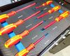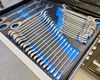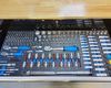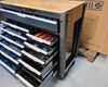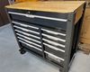 Unieke grote gereedschapswagen met 12 laden waarvan 10 laden gevuld met kwaliteits gereedschap, degelijke wagen met lades en wielen lopend op kogellagers, Houten bovenblad voor gebruik als werkbank, 1 meter breed,1 meter werkhoogte, kunstof bescherming aan randen, gewicht ca 120 kg, nieuw in doos