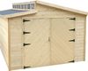 de garage torino met dubbele houten deur,afmetingen: 3600 x 5700 x 2921mm,fundament:3600 x 5700mm,opervlakte:20.88m2,binnenoppervlakte 20.06m2,wanddikte 28mm,type dak:zadeldak met zwarte roofing,oppervlakte:onbehandeld te behandelen 45m2,gratis levering aan huis