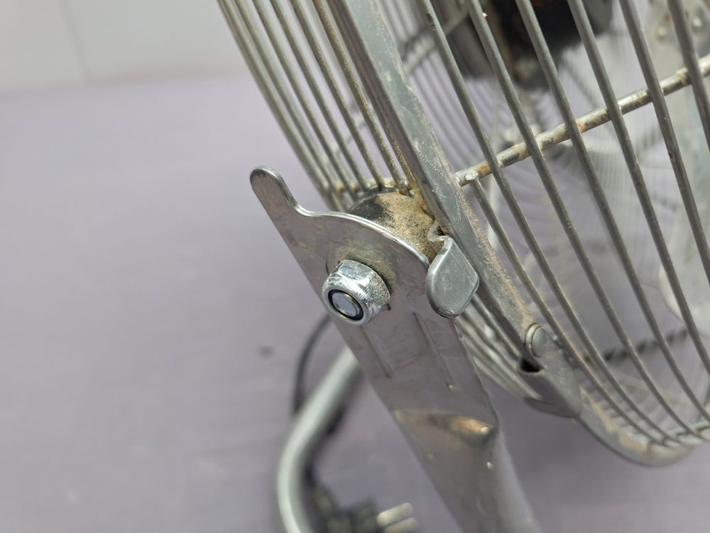 Volledig metalen uitvoering: chroomkleurige behuizing, bladen en beschermrooster