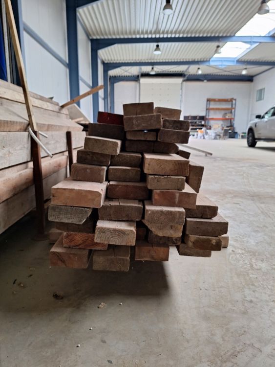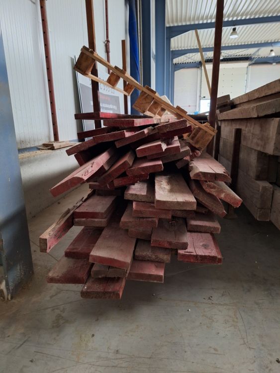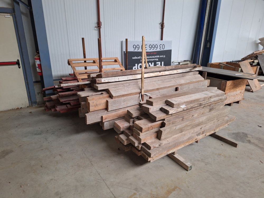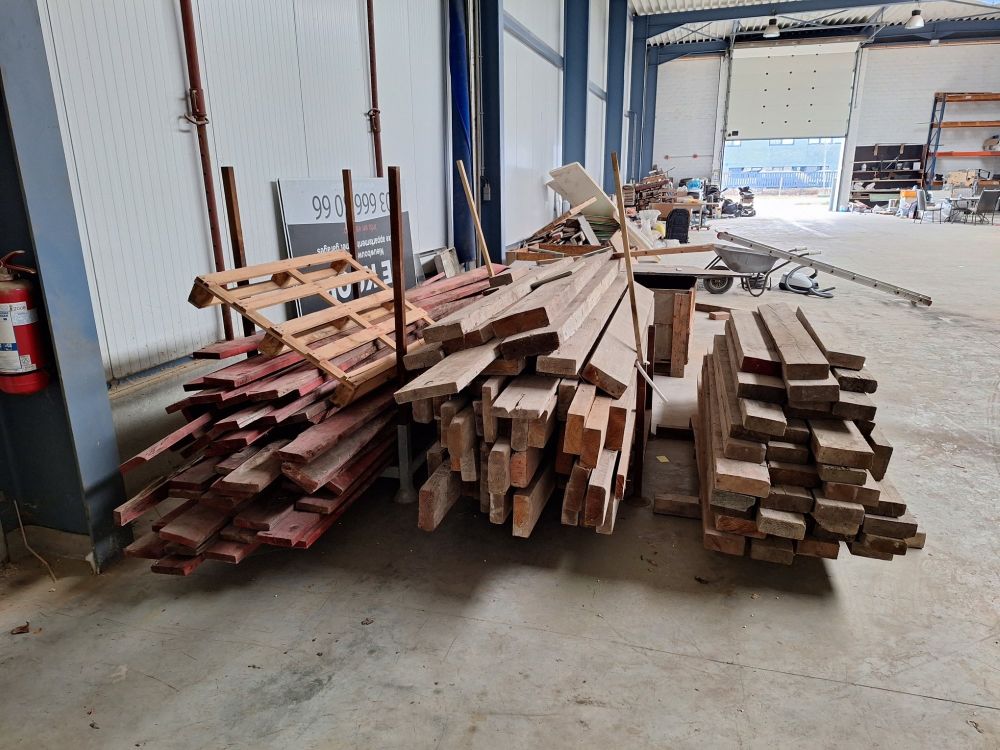 | Name: | Grote hoeveelheid gebruikte houten balken en planken, afkomstig uit bouw |