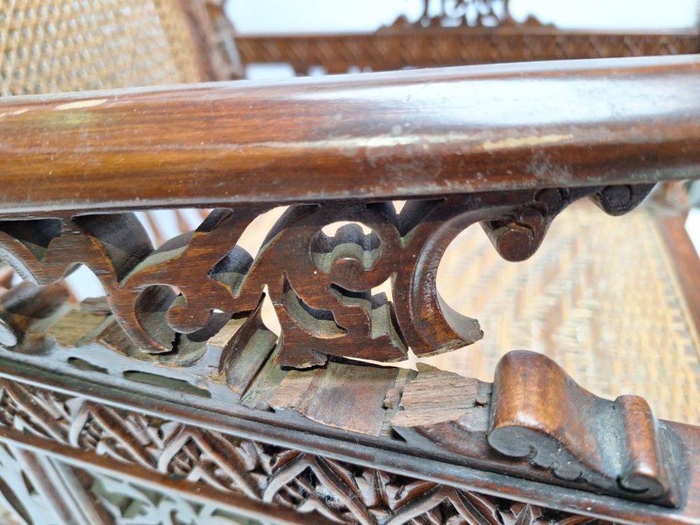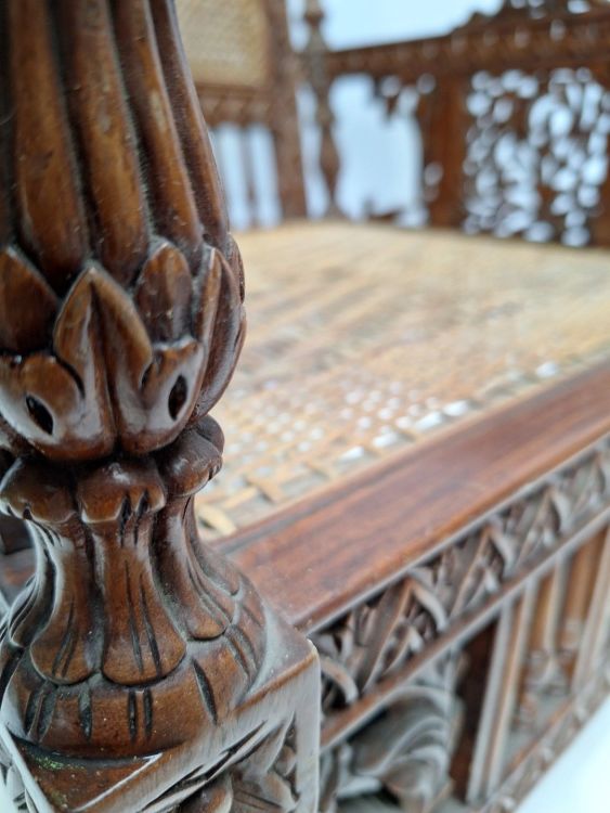 | Name: | Handgesneden houten stoel met gevlochten rotan zitting en rugleuning |
