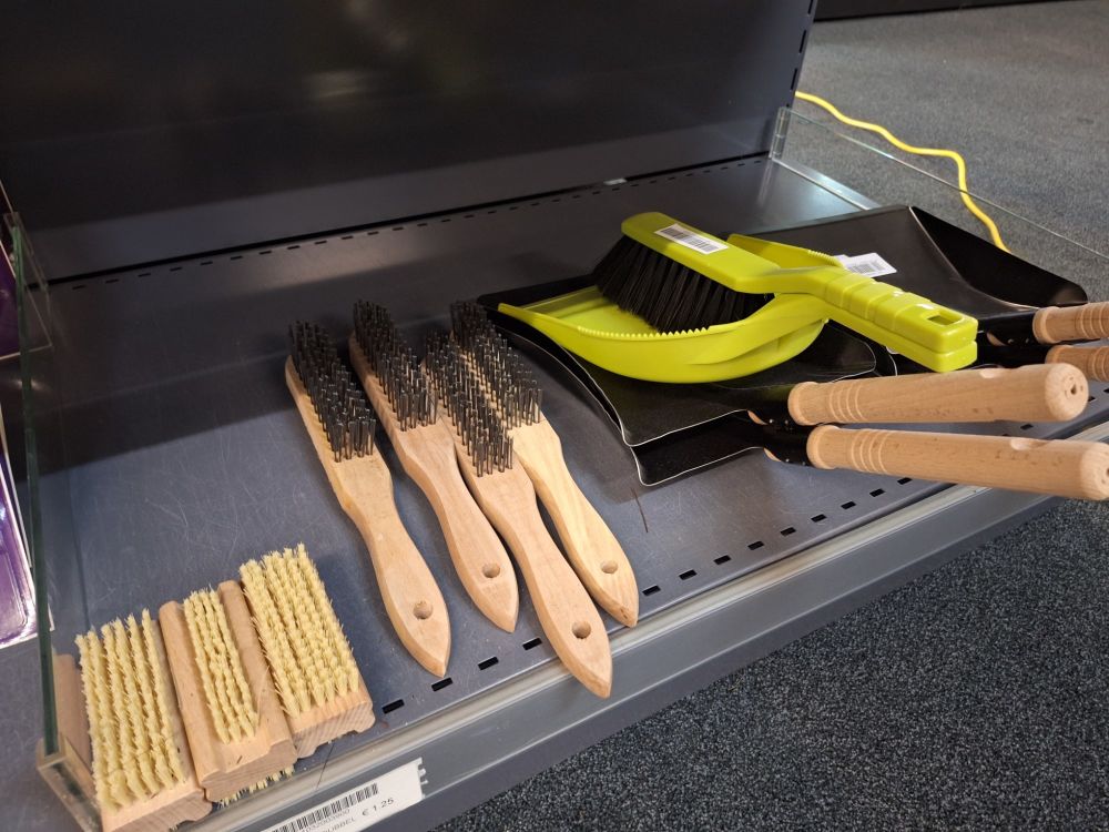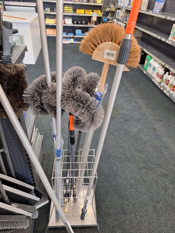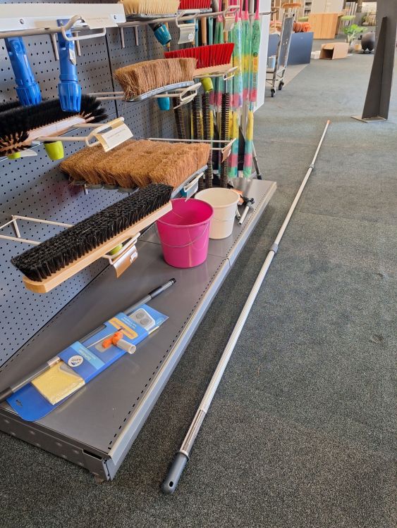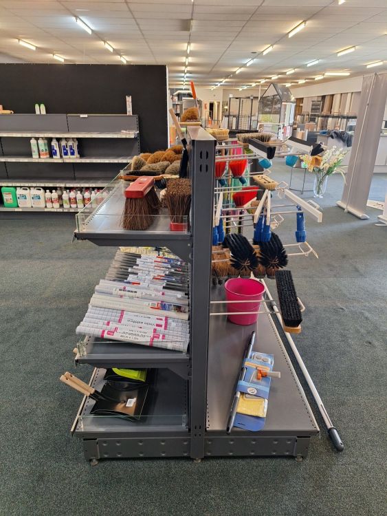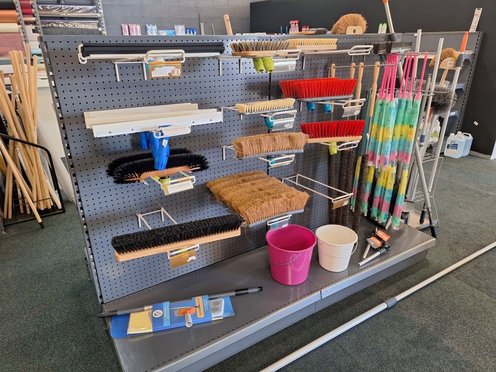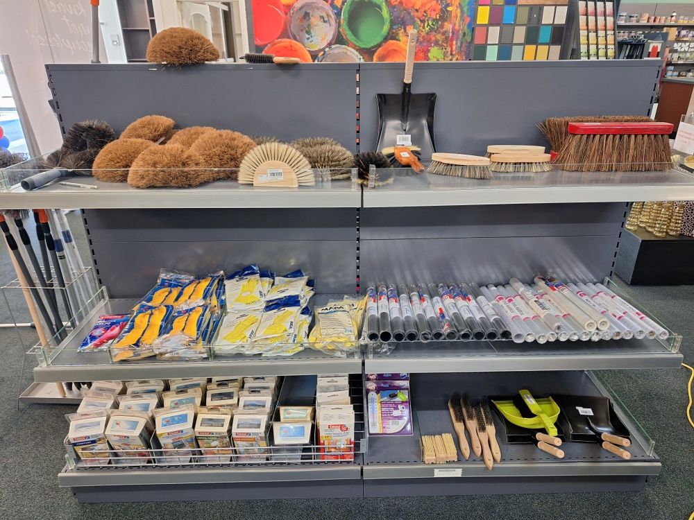 Inhoud 4 lm winkelrek in totaal 250units poetsmateriaal,spuitbussen verf,borstels,handschoenen,folie,aftrekkers,wc borstels enz...(zie afbeeldingen)
