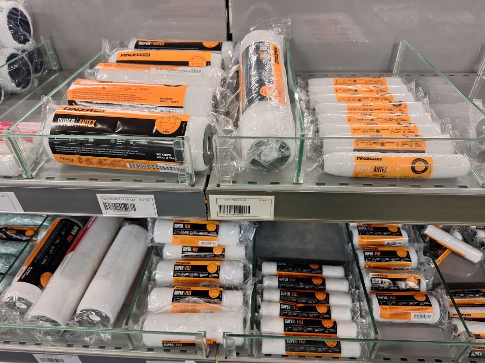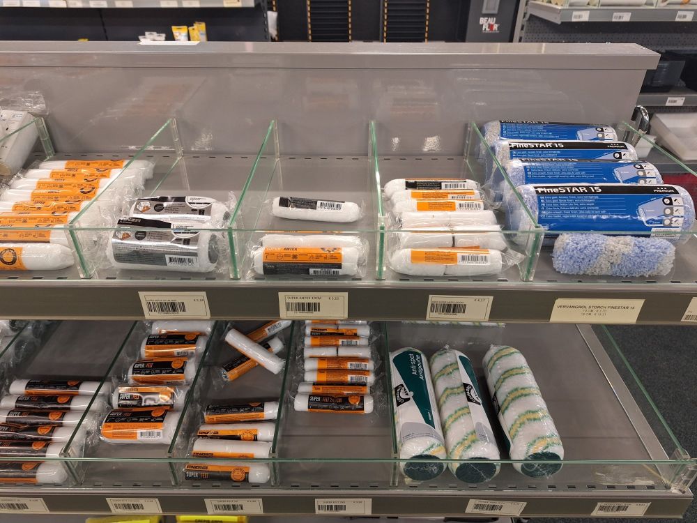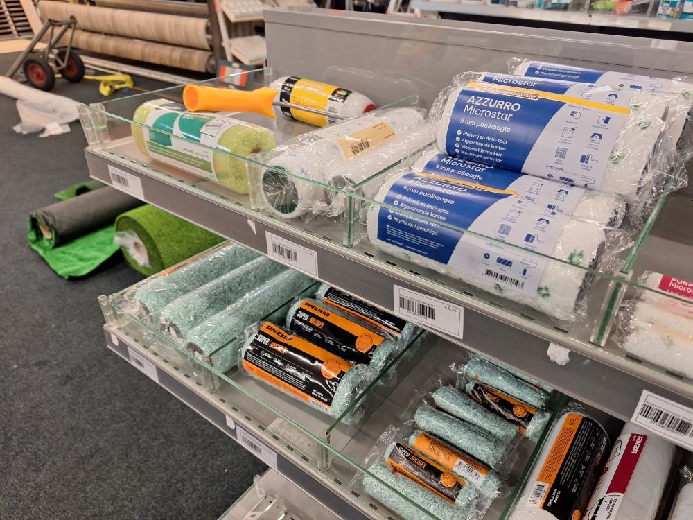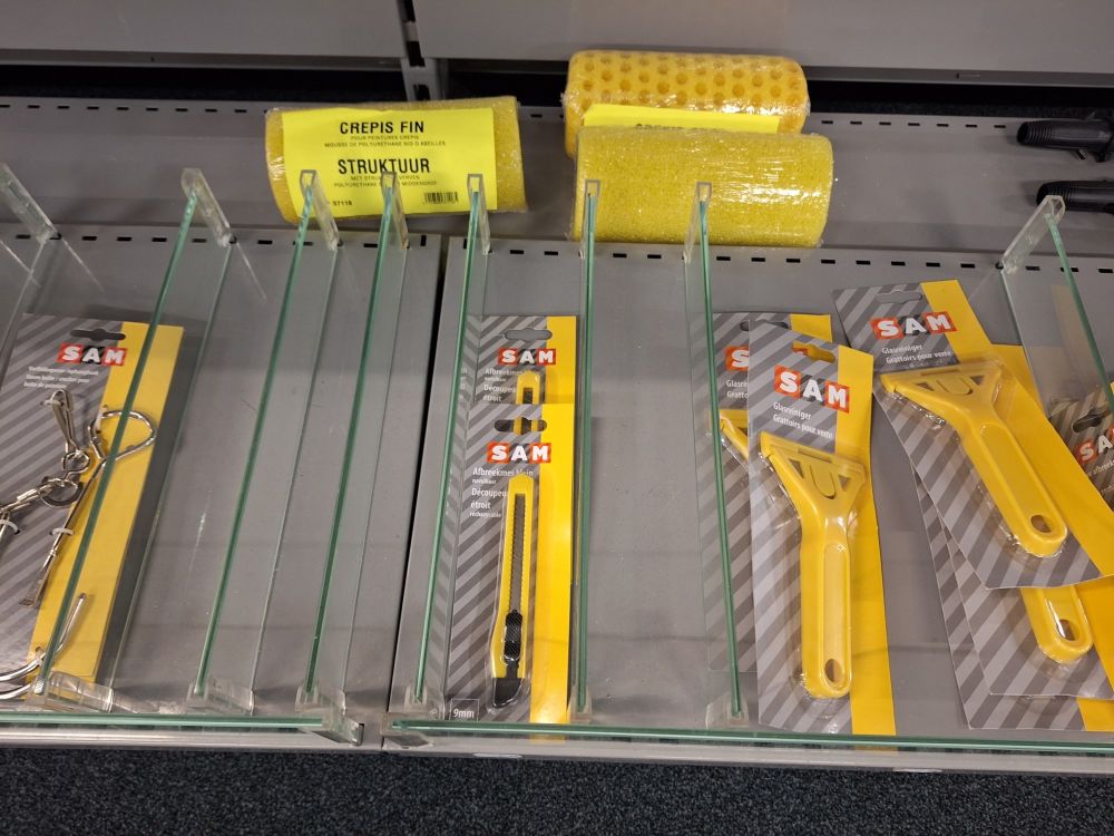 Inhoud 4 lm winkelrek +/-500unit verf materiaal (verfrollers,Stanley messen,schuurpapier)