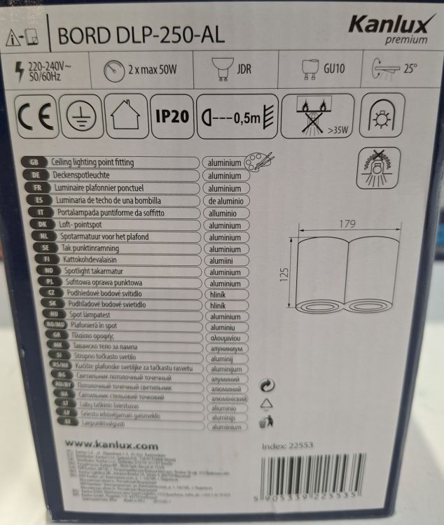 | Name: | Kanlux BORD DLP-250-AL Premium Dubbele Opbouwspot Aluminium - Set van 5 stuks |