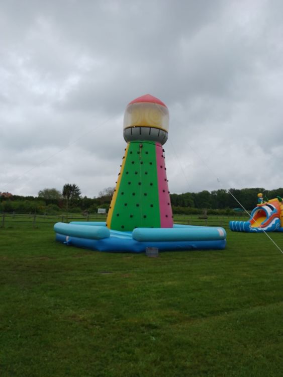 Klimtoren van 8 m hoog en de base is 7m diameter. Veiligheidsharnassen en blazer niet inbegrepen.