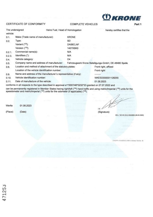 | Auction: | V250188 Veiling van 5. 3assige opleggers Krone bwj 2023 |