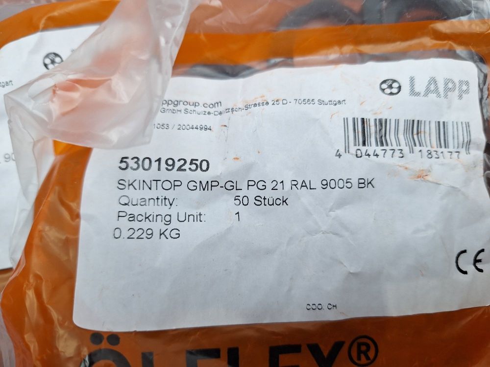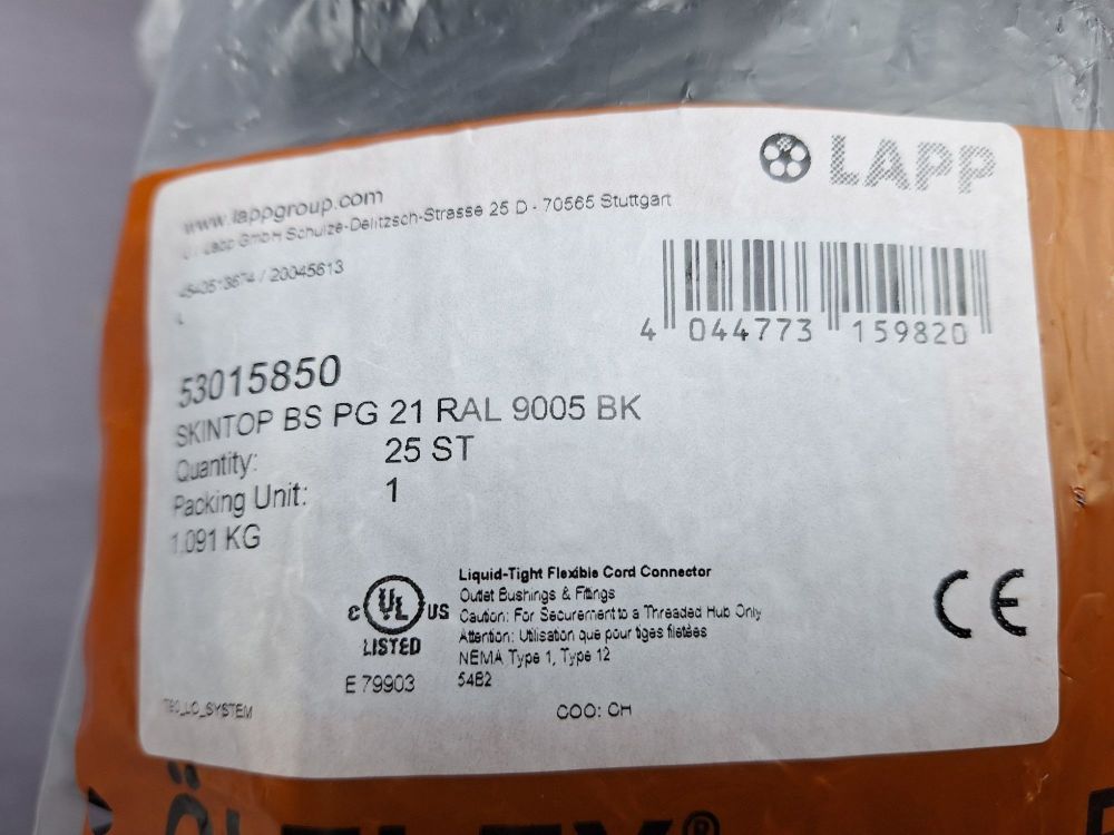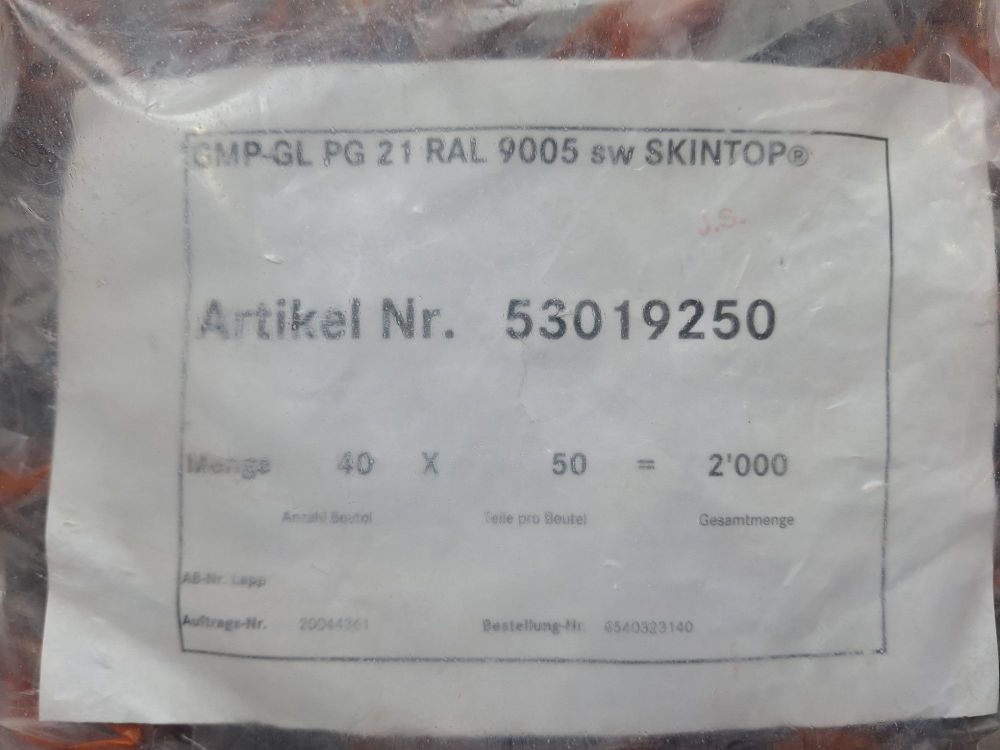 -3 zakjes van 25st. Professionele wartels van het merk LAPP, type SKINTOP® BS PG 21 RAL 9005 BK.