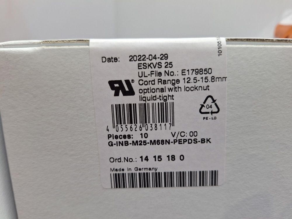 -2 originele doosjes van 10st.Phoenix Contact ESRVS 25 wartels, type GHNB-M25-M6N1-PEPD-S-BK.