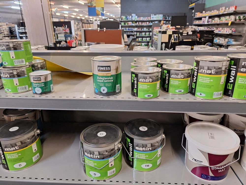 | Name: | Lot Inhoud 3 lm winkelrek – diverse verven Finess,Boss en Tin2wall |