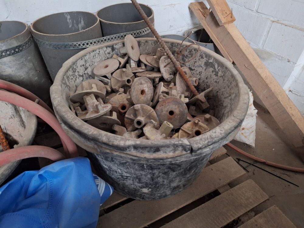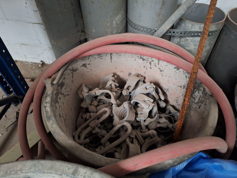 | Name: | Lot met 3 emmers stellingsklemmen en wapeningsdraad |
