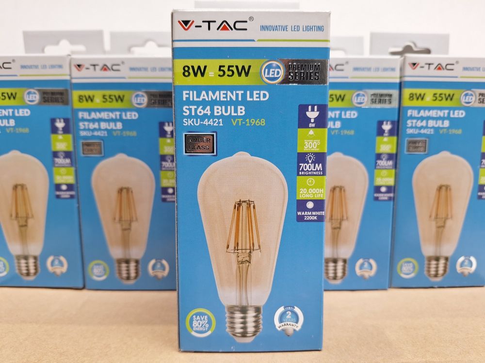 | Name: | Partij van 26x V-TAC Filament LED ST64 "Amber Glass" Lampen - 8W (700lm) |