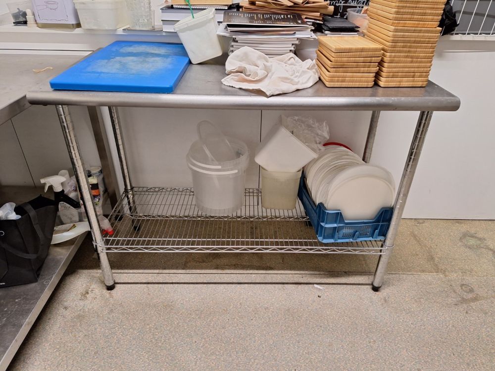 1 x RvS werkbank met open onderstel afmetingen 124x60x88cm