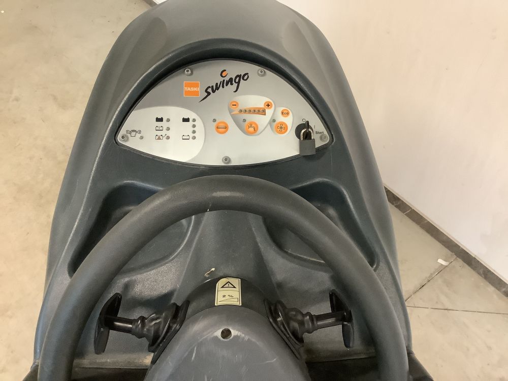 Model Swingo 1255B, capaciteit 2475m2/u, schrobbreedte 55 cm, dweilbreedte 80cm, werktijd batterij: 3u.