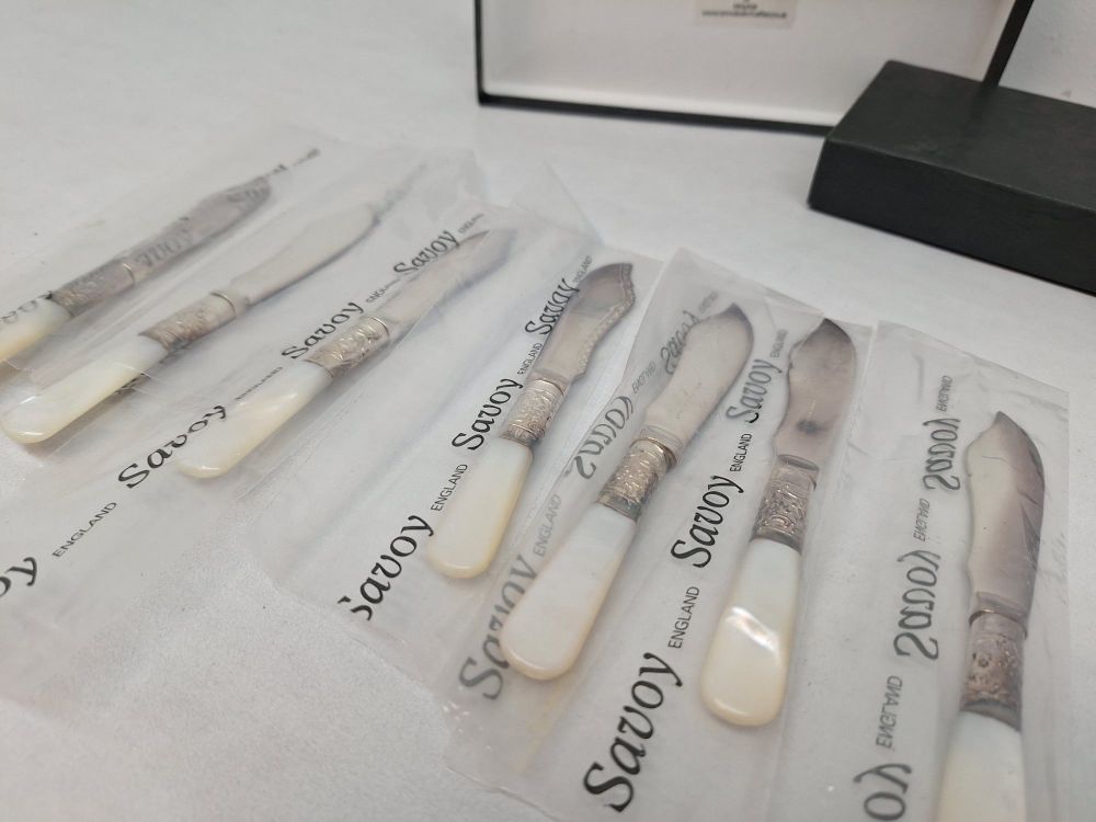 8 Botermesjes/kleine messen, individueel verpakt in plastic hoezen gemerkt "Savoy England".