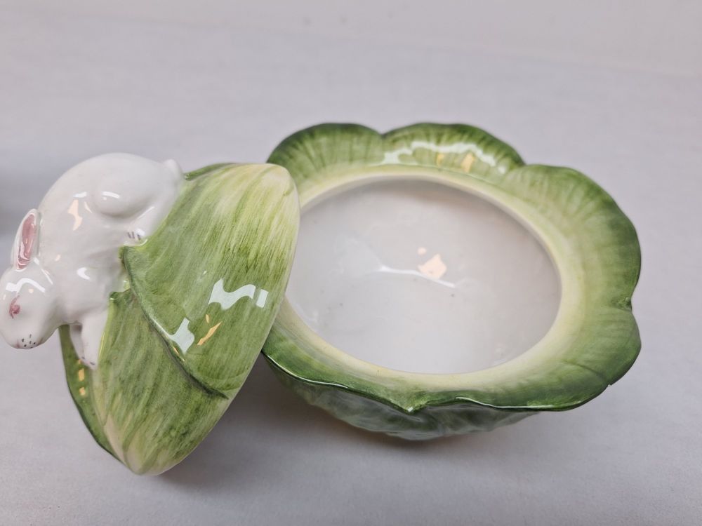 Cabbage & Rabbit schaltje – koolvorm met wit konijntje op deksel – Made in Italy | Materiaal | Keramiek / porselein