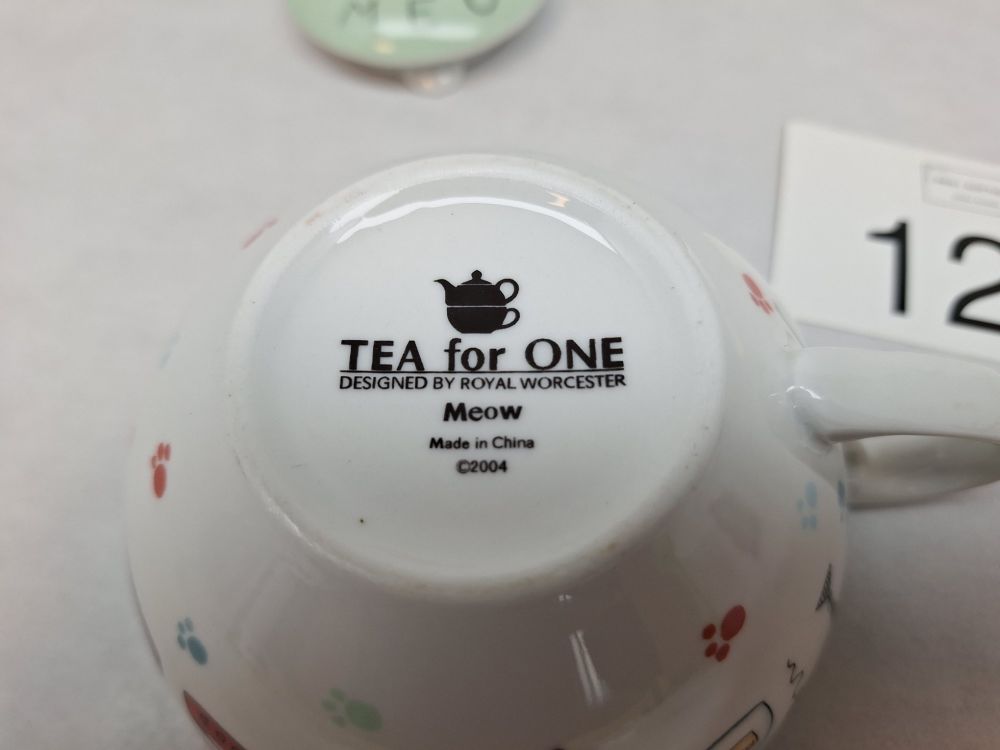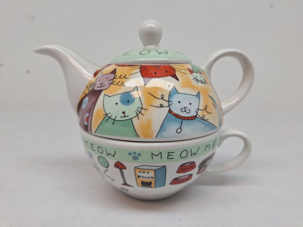 Royal Worcester “Meow” Tea-for-One – cartoonkatten, stapelbaar (kop + pot)