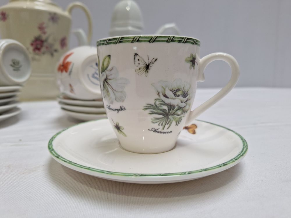 | Name: | Verzameling keramisch servies: twee theepotten, een koffiekan en diverse kopjes en schotels |