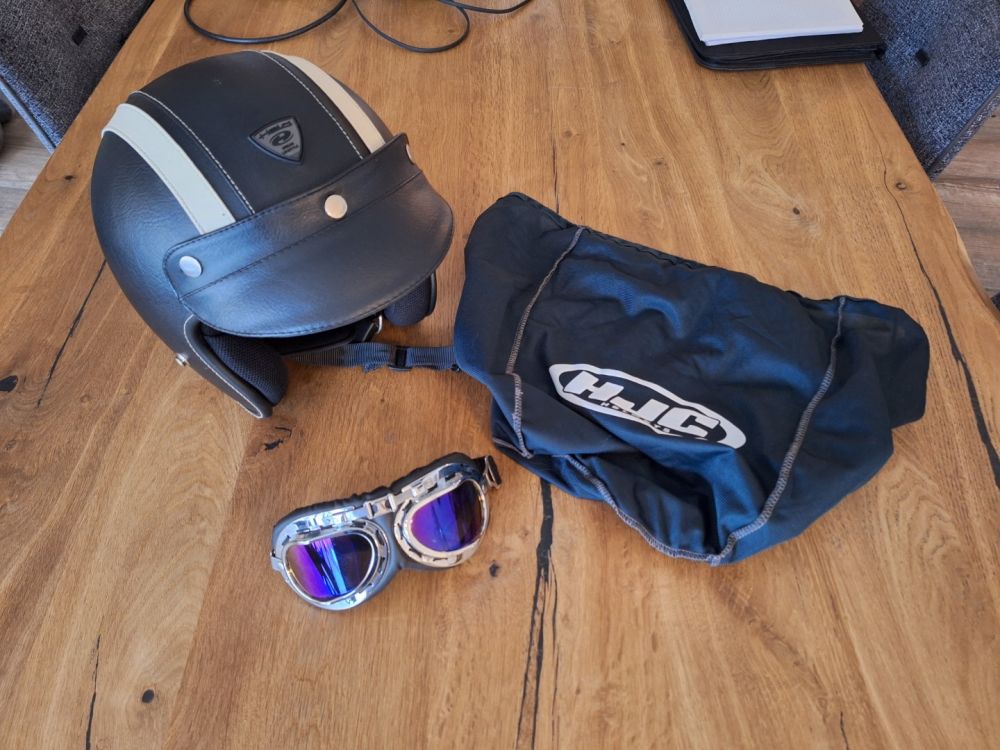 Name: | Vintage motorhelm Held met tas en retro googles |