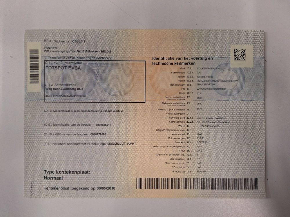 Documenten: Deel 2 kentekenbewijs ontbreekt.