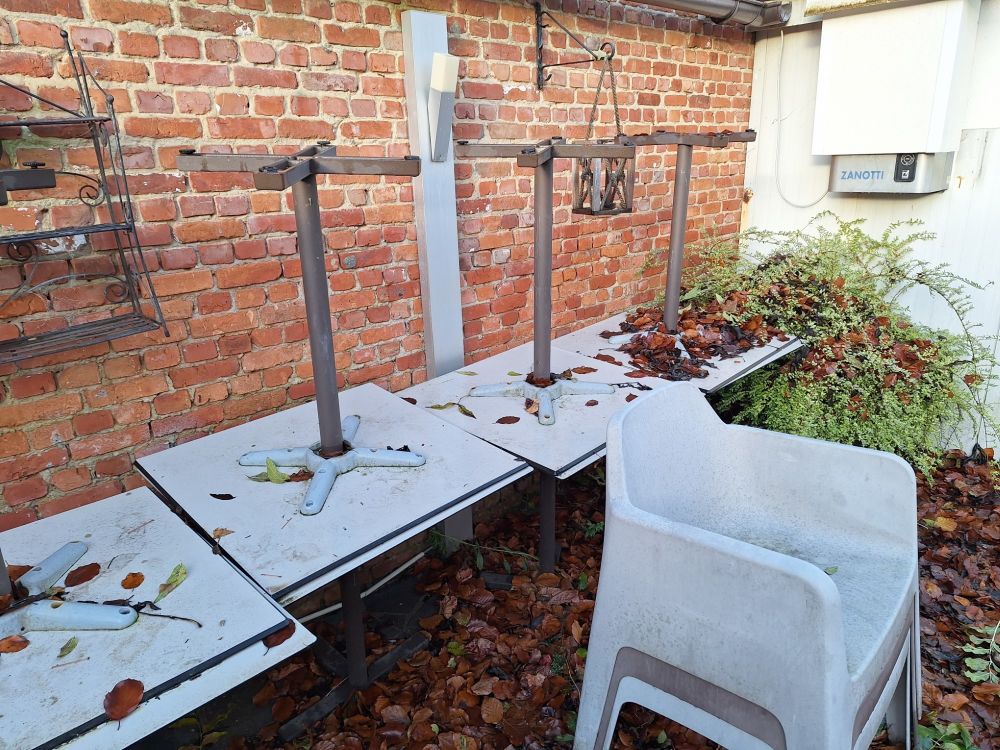 | Name: | Vrijstaand luifelsysteem ,10 terrastafels + 20 pvc loungestoelenen |