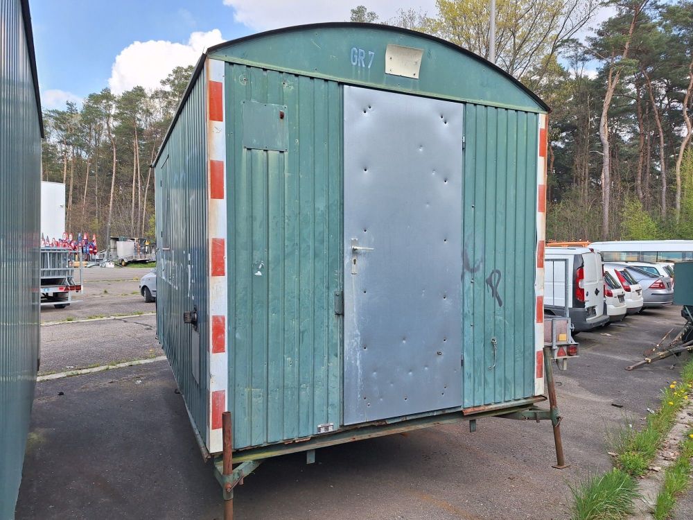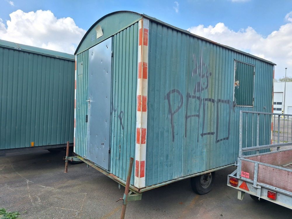 Toegang: Voorzien van een centrale metalen deur aan de achterzijde en een raam met luik aan de zijkant.