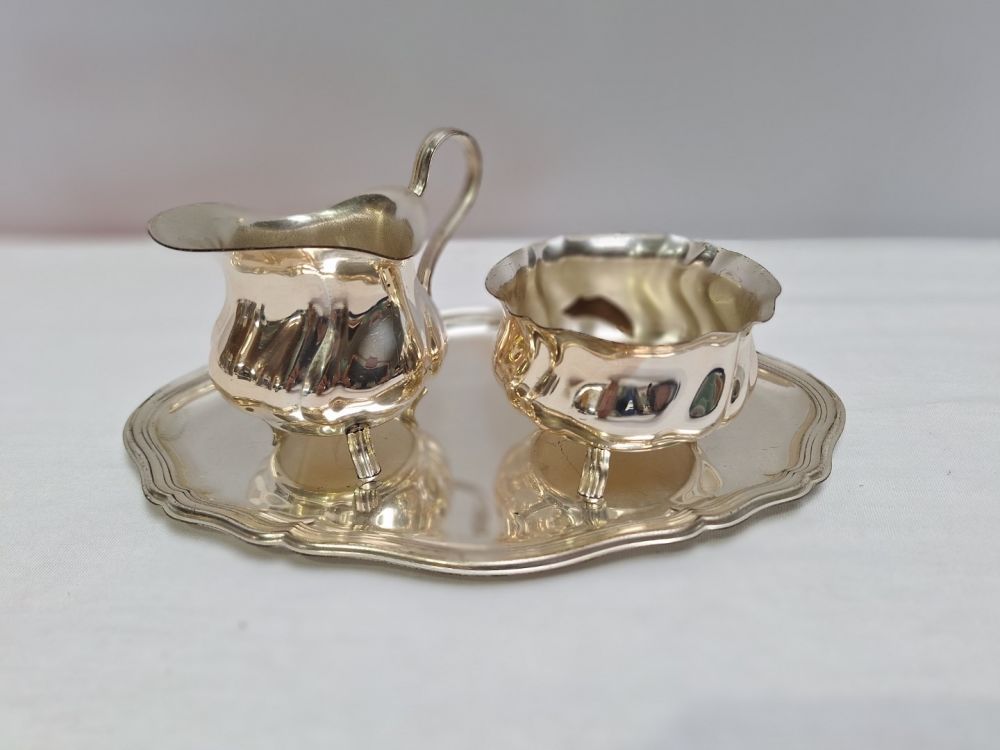 | Name: | Zilvergeplateerd roomstel op dienblad – HKE Württemberg, West-Duitsland |