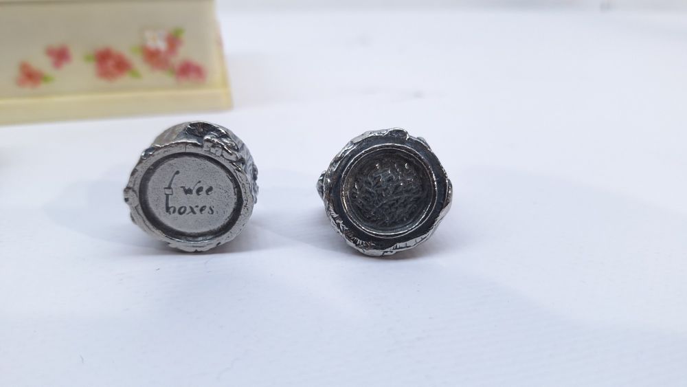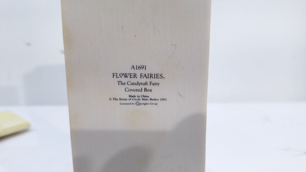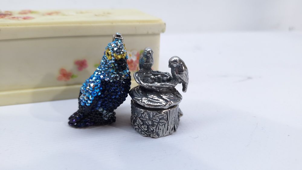 Nom: | 1 rechthoekige sierdoos met bloemmotief,munt en twee kleine dierenfiguren |