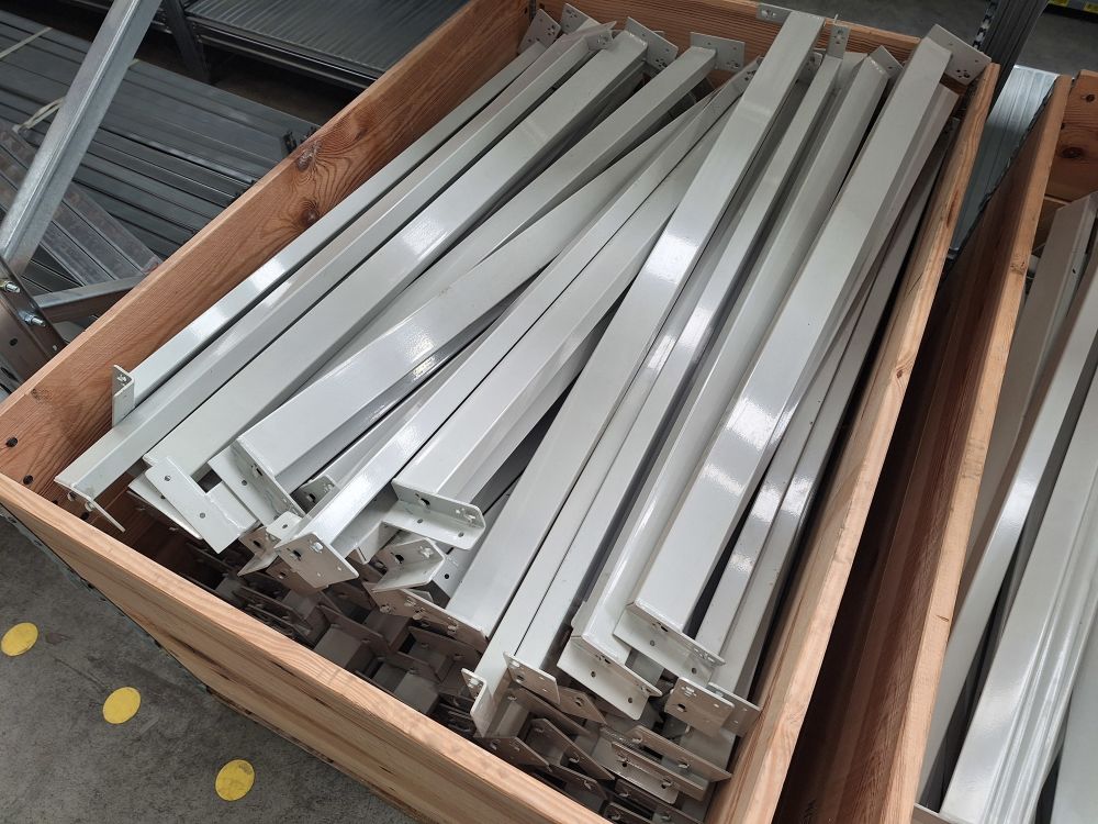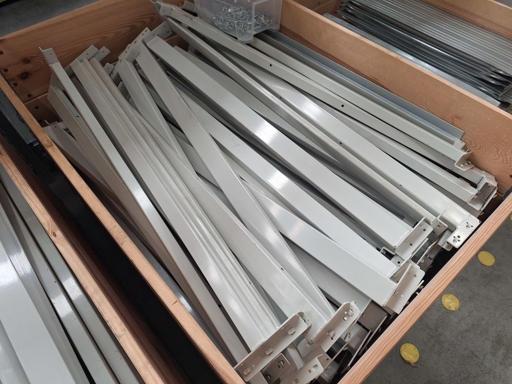 | Nom: | 2 palletboxen met metalen profielen voor rek |