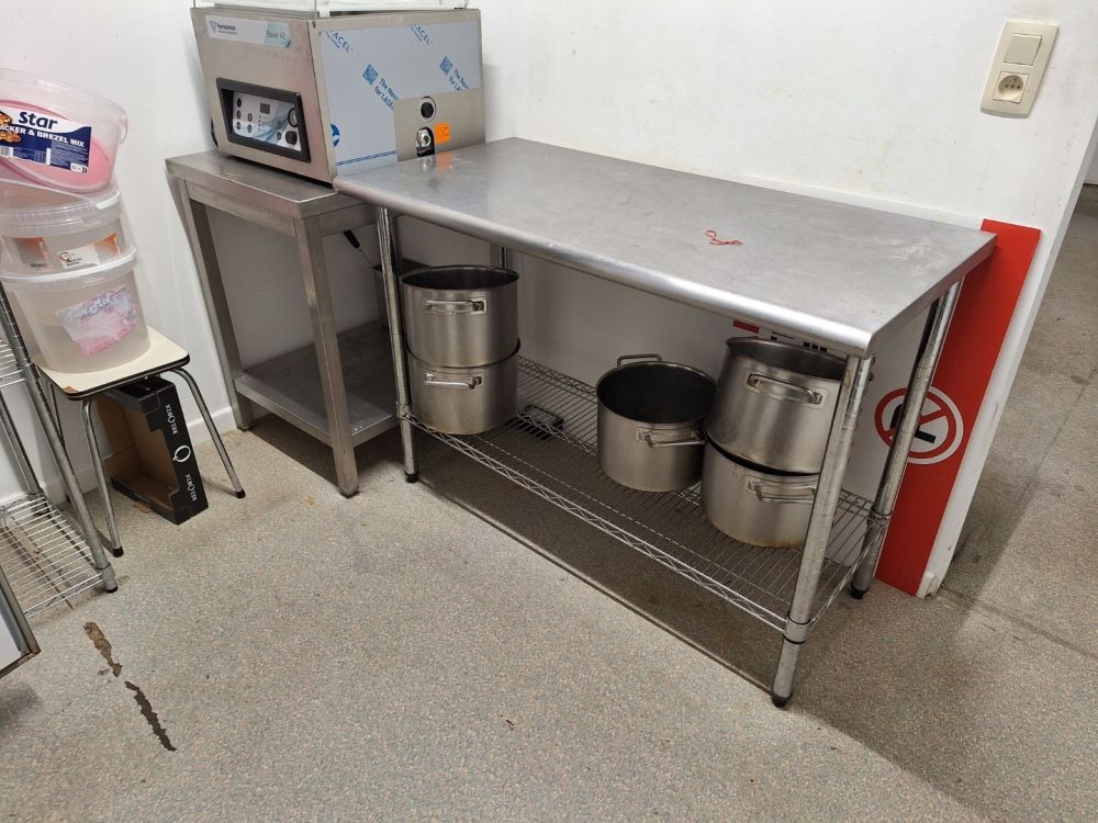 | Nom: | 2 Rvs werkbanken met open onderstel |