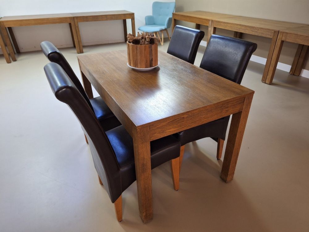 3 x massief eiken bruine eettafels afmetingen 140x80x80cm