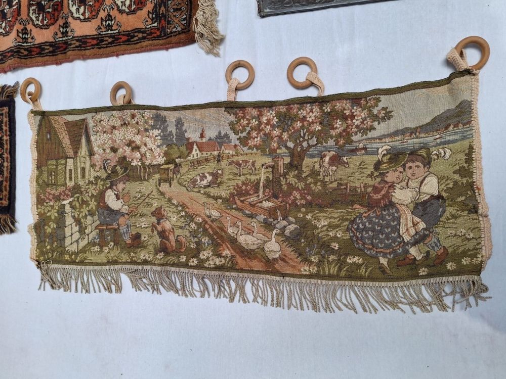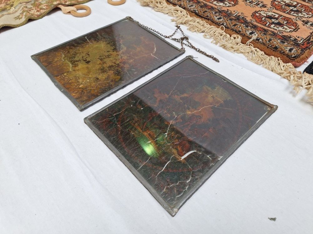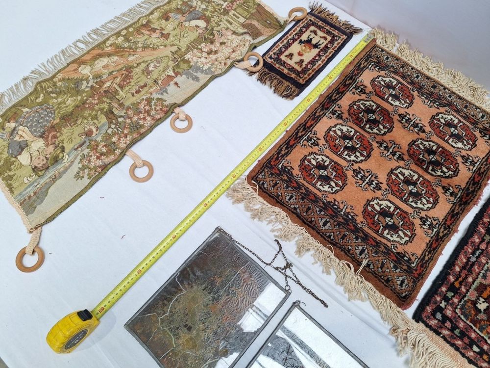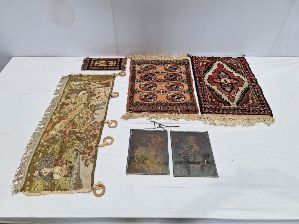 | Nom: | 3 Perzische tapijtjes,Gobelin en 2 x loodglas art deco |