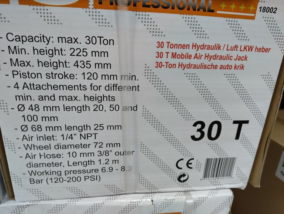 proffesionele werkplaatskrik 30 ton Pneumatisch aan gedreven hydraulische pomp. Nieuw in doos