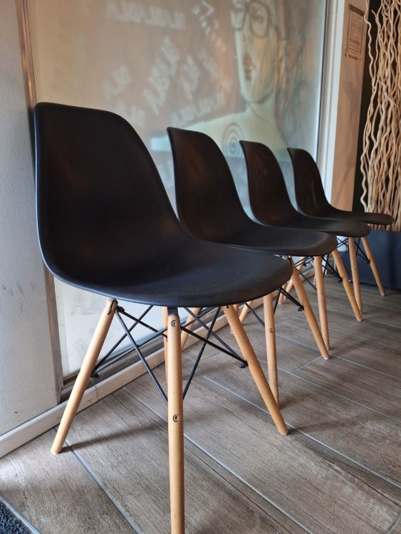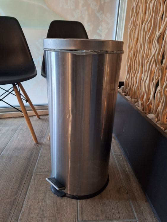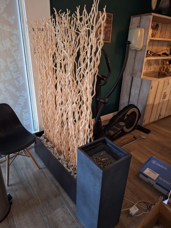 Nom: | 4 x eetkamerstoelen, pedaalemmer,hoge bloempot en wandscherm |