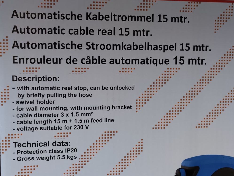 | Nom: | Automatisch stroomkabelhaspel 15 meter |