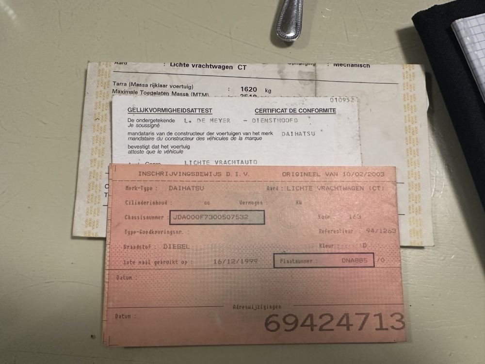 Daihastsu Rocky eerste maal in gebruik 16/12/1999 chassisnummer JDA000F7300507532 dieselmotor, lichte vrachtuitvoering, 70,299 km. Boorddocumenten ok.