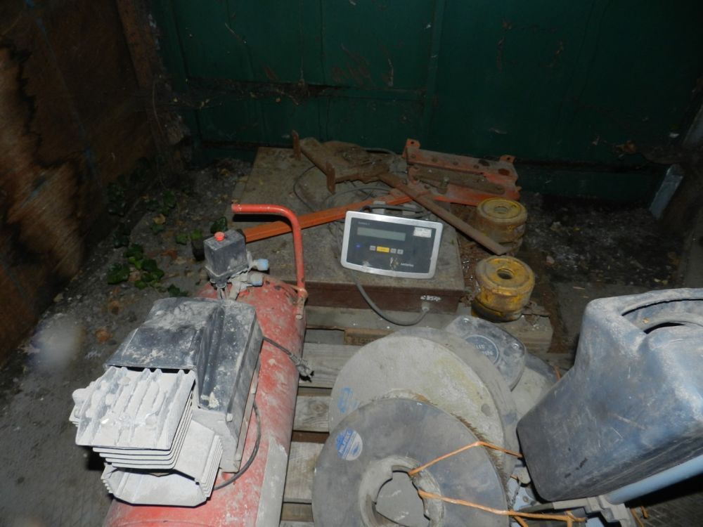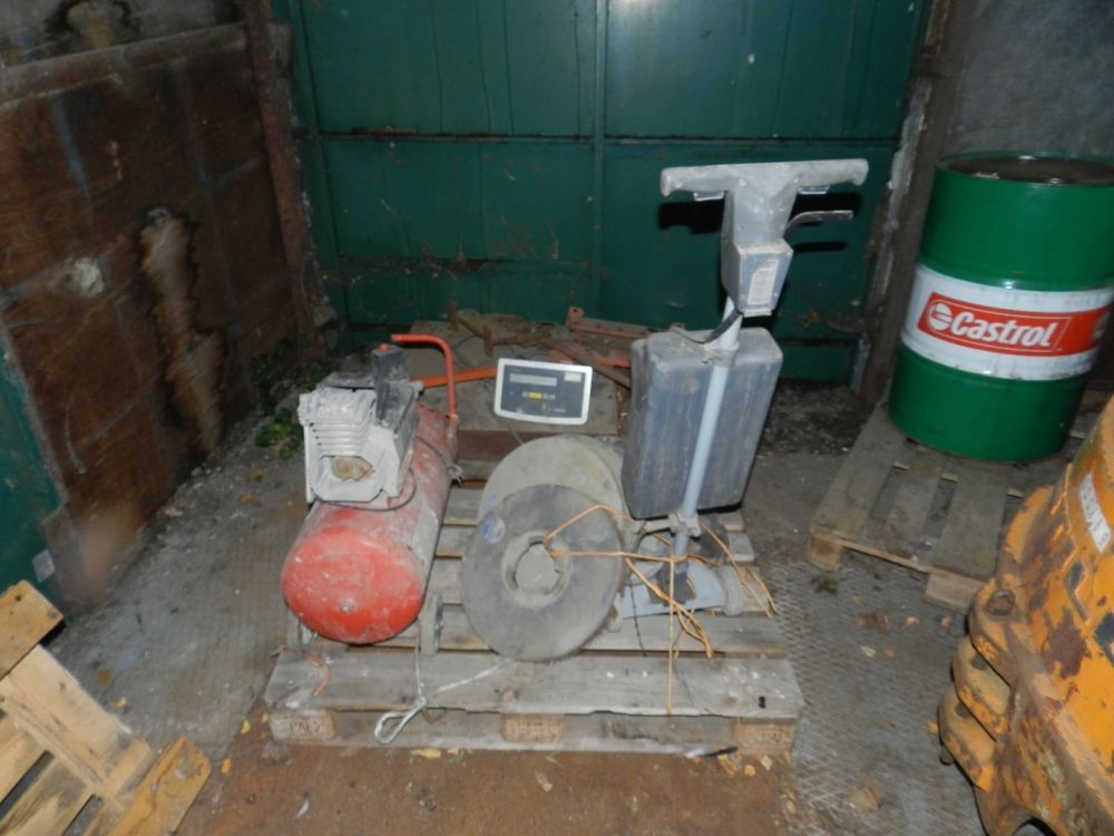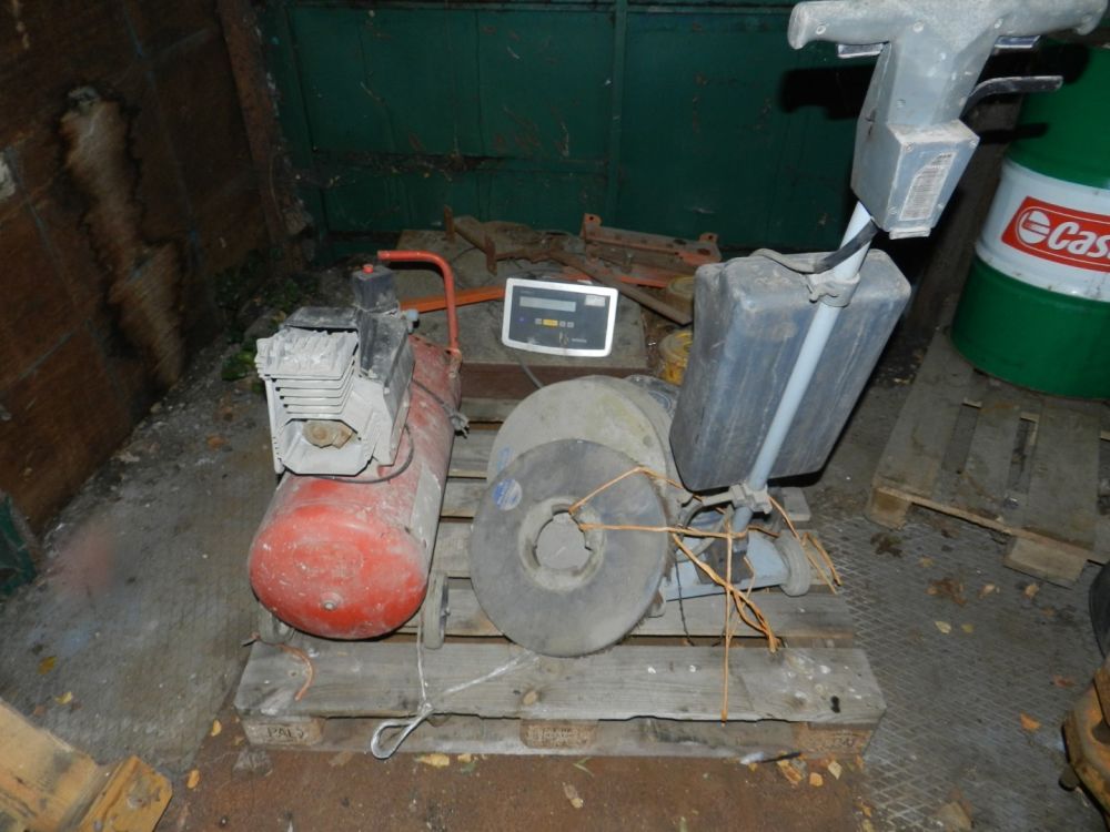 diverse items bestaande o.a. uit monobrush, katrollen, digitale weegschaal en compressor. Zonder verdere gegevens.