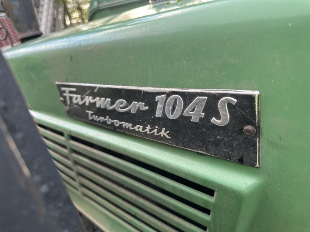 Fendt Farmer 104S Turbomatic eerste maal in gebruik 07/07/1975, 8008 uren op teller, met voorlader, pto en 3-puntsophanging, boorddocumenten ok.