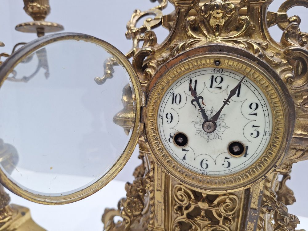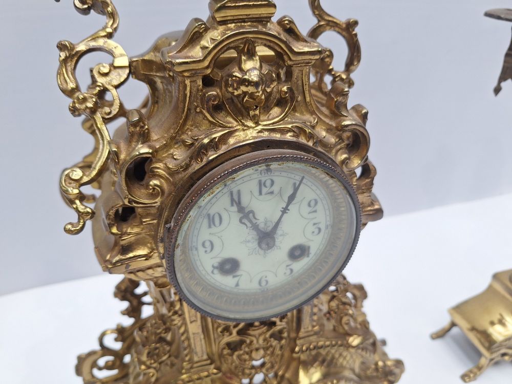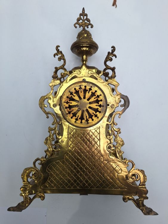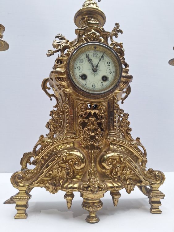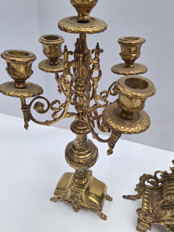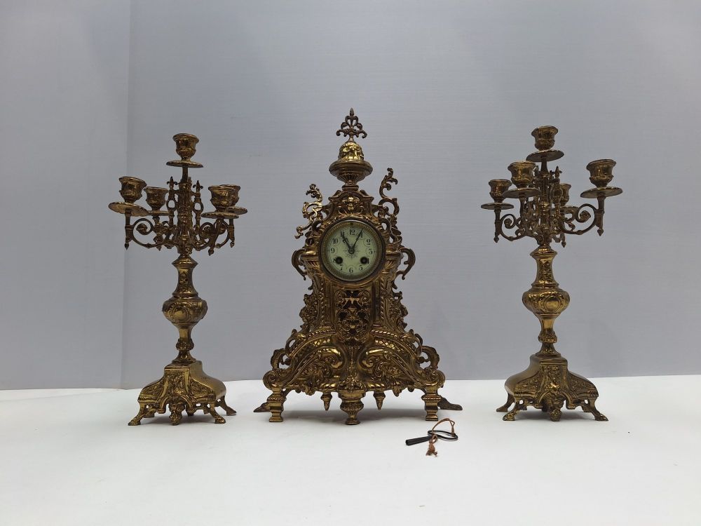 | Nom: | Grote Koperen/Messing Schouwset - Klok met 2 Kandelaars |