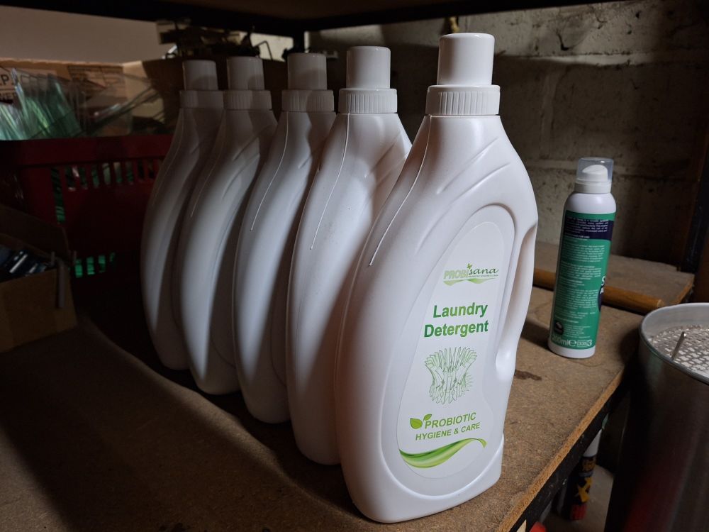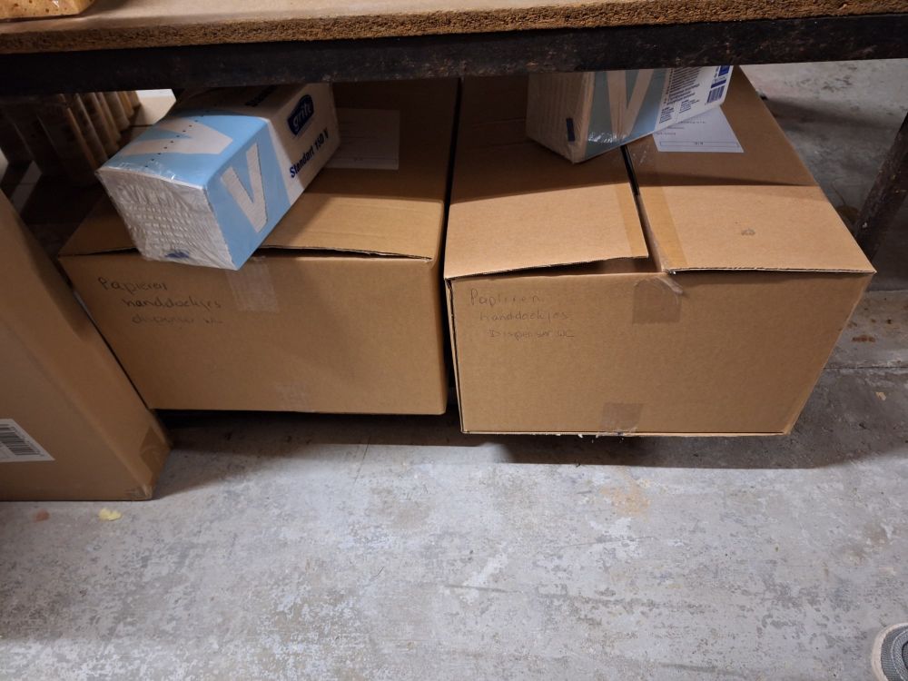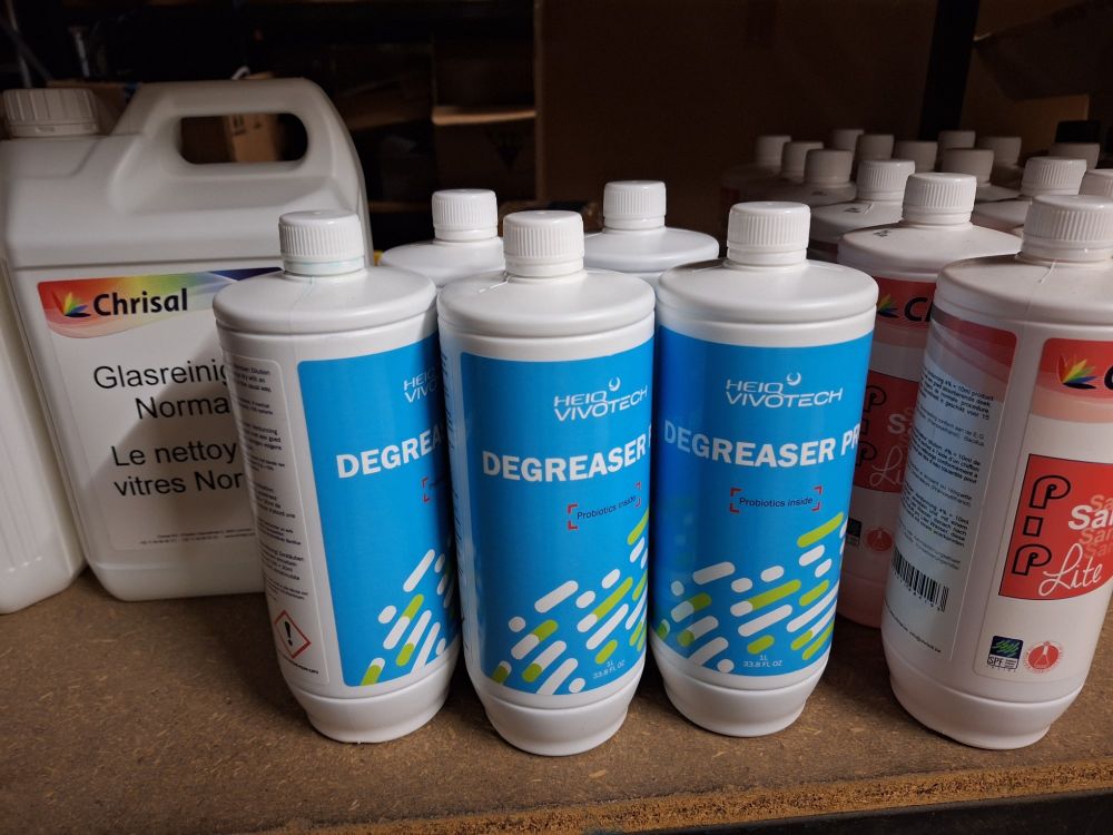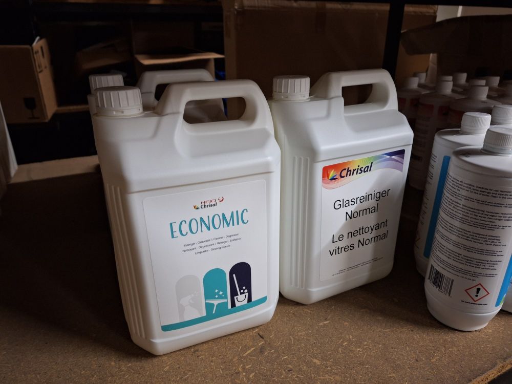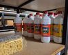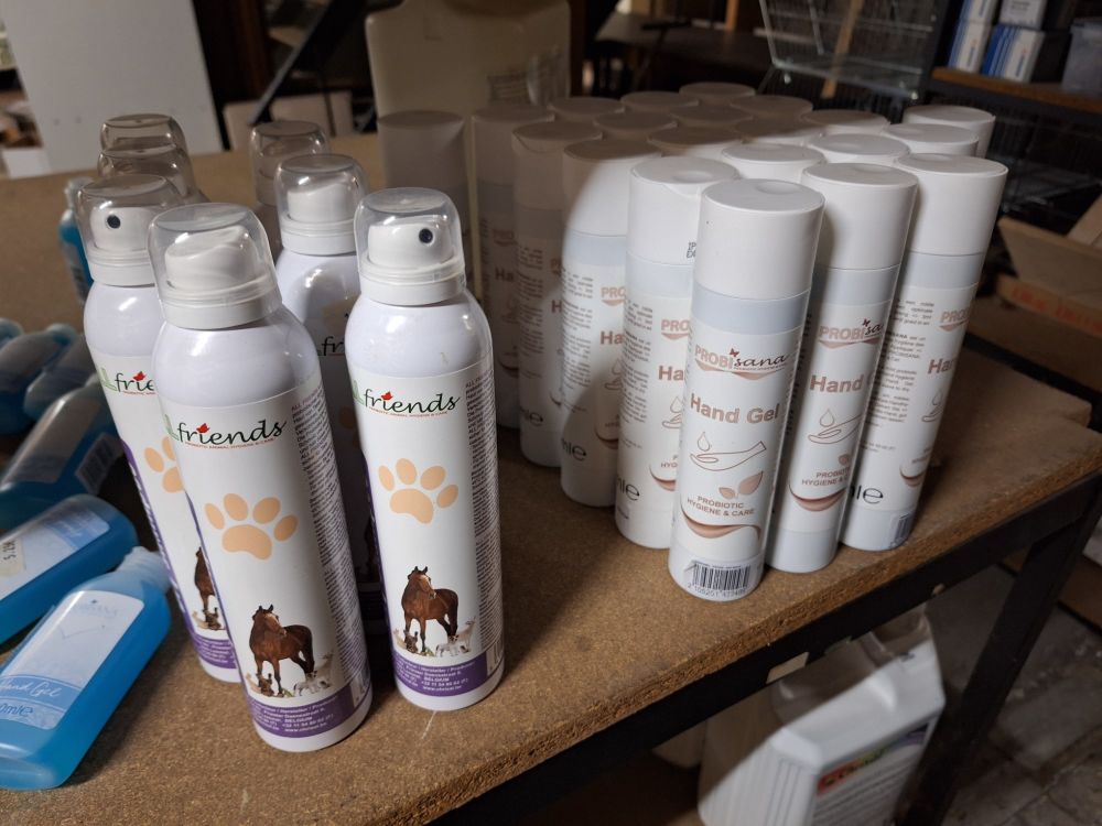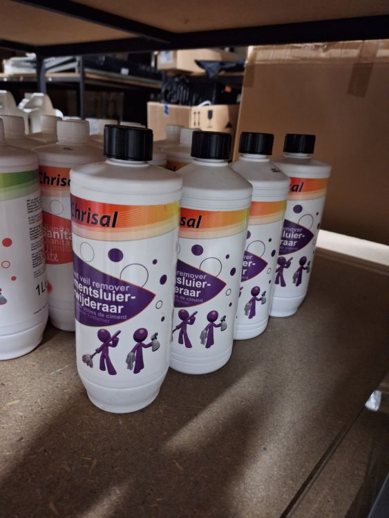 +/- 150st.voorraad diverse poetsproducten(sanitair,glas,brandbezine,bleekwater,ontvetter,stijfsel,stelen,handschoenen,doeken